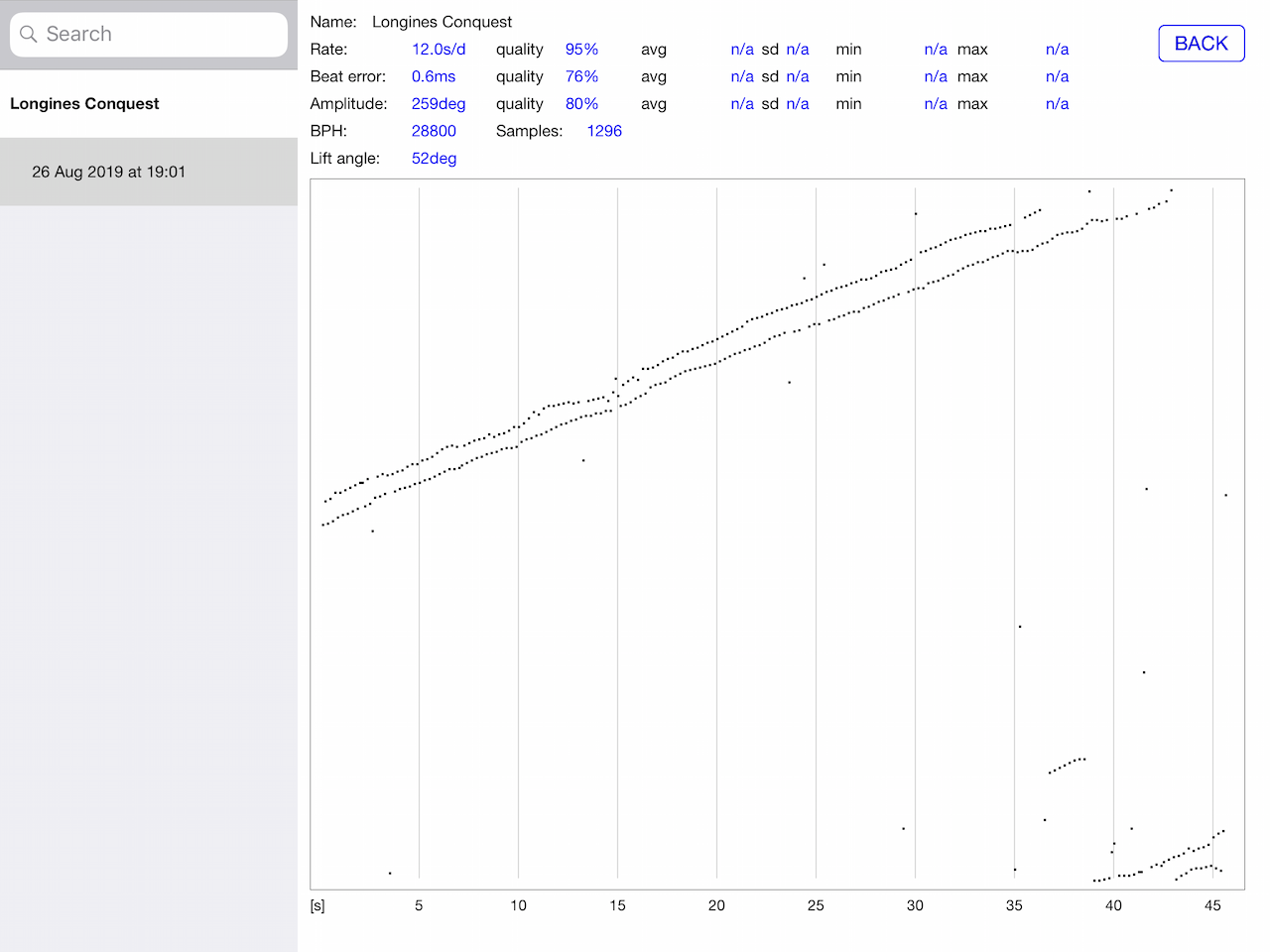 Точность хода «с завода» весьма высокая и, главное, стабильная: +12 сек/день. На фото прилагаю график измерений от 26.08.19 (Watch Tuner Timegrapher). Можно скорректировать и точнее, но я их не открывал.