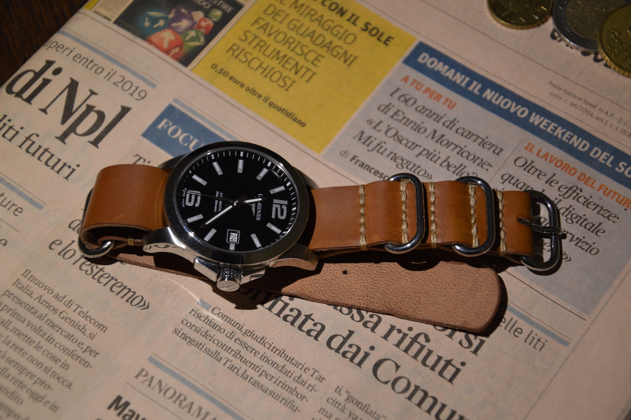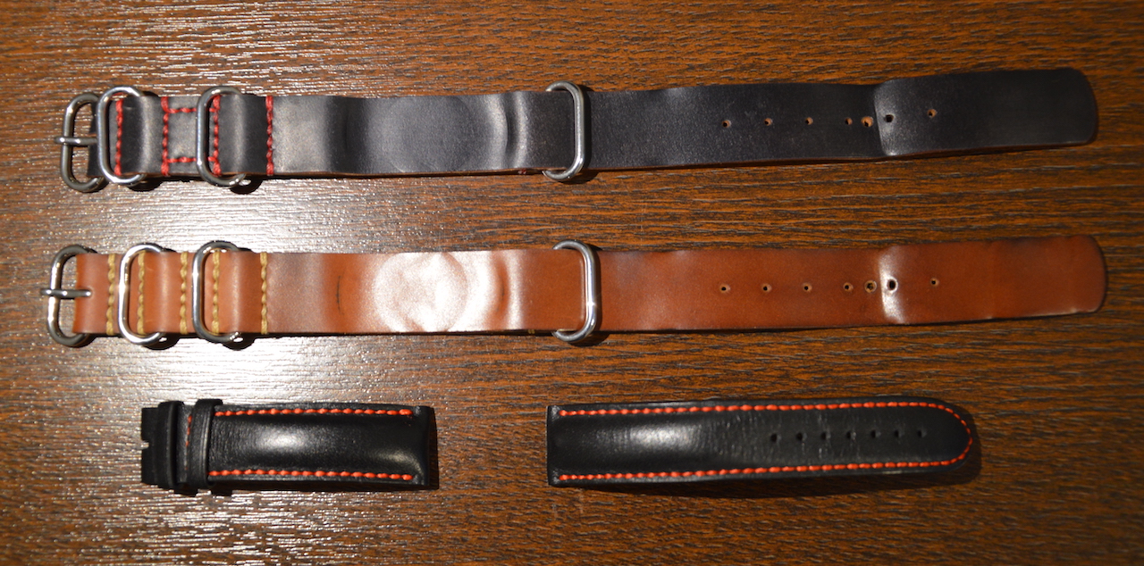 А еще отдам два обалденных ремня ZULU от Difues Leather, которые сделаны на заказ специально для этих Conquest-ов мастером своего дела Максимом Каротчиком. Оба ремешка изготовлены из кожи Shell Cordovan (Тоскана, Италия). Это самая дорогая кожа, которую можно себе представить! Выделывается из крупа лошади в течение полугода. В общем, почитайте про нее в интернете. Она стоит своих денег.