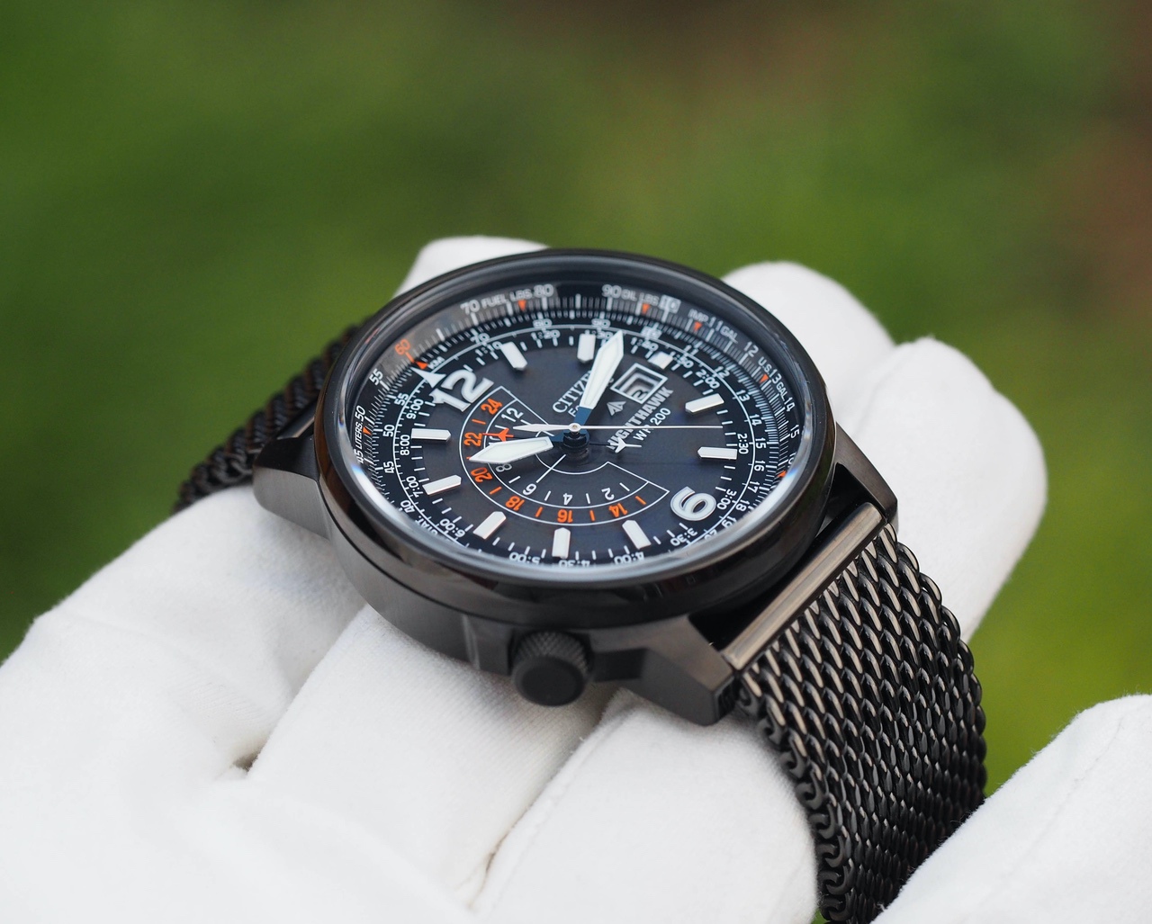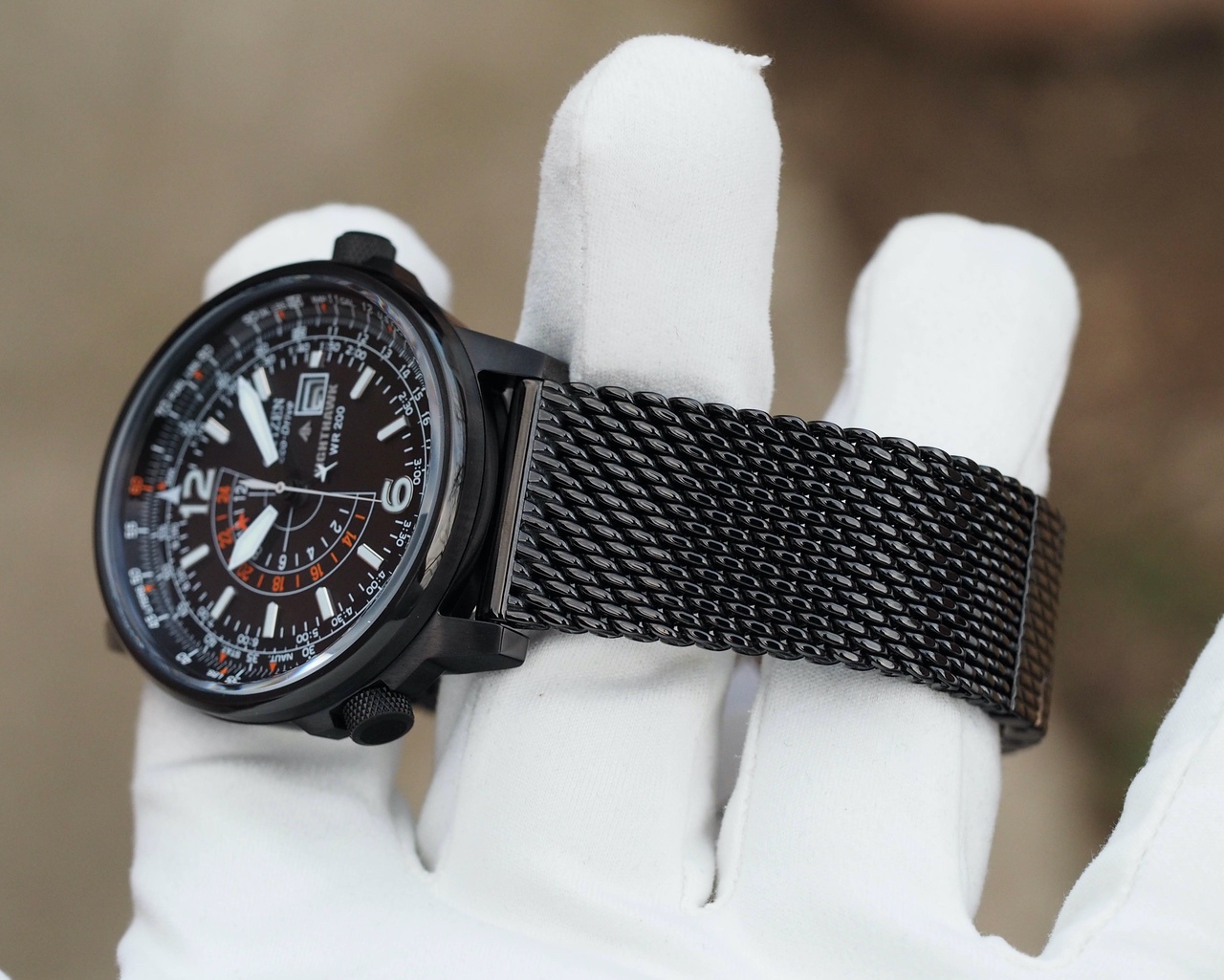 Питание от света, второй часовой пояс, удобный размер, отличная водозащита, плюс очень красивый фирменный mesh браслет