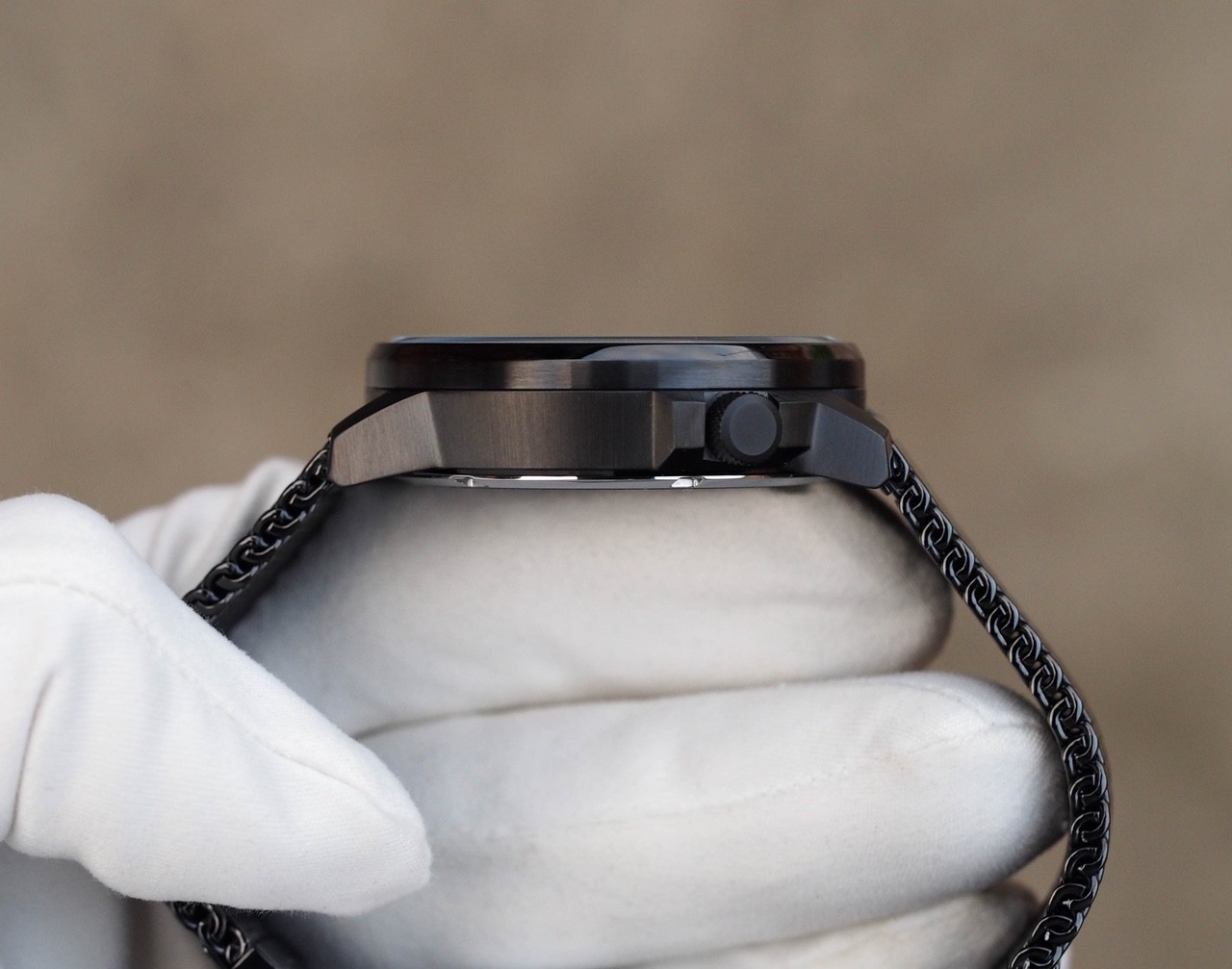 Стальной корпус с практичным сатинированием, стойкое ионное черное IP покрытие