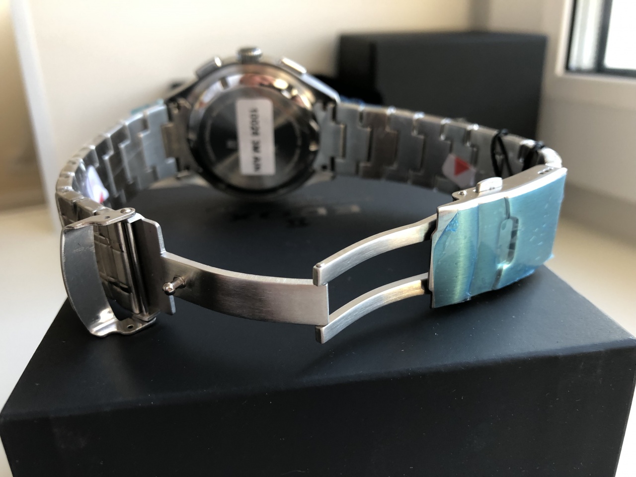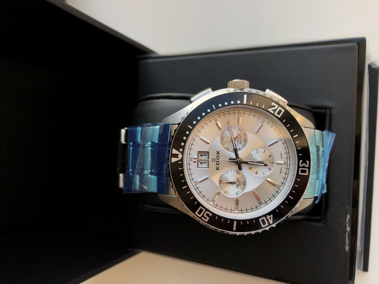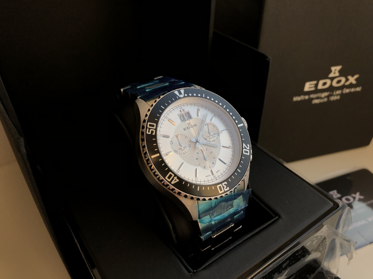 Фото реально продаваемого экземпляра, очень интересный и не избитый чёрный дайвер, живьём смотрится намного интереснее (не стал снимать плёнки с браслета и коробки, ведь это так приятно сделать самому