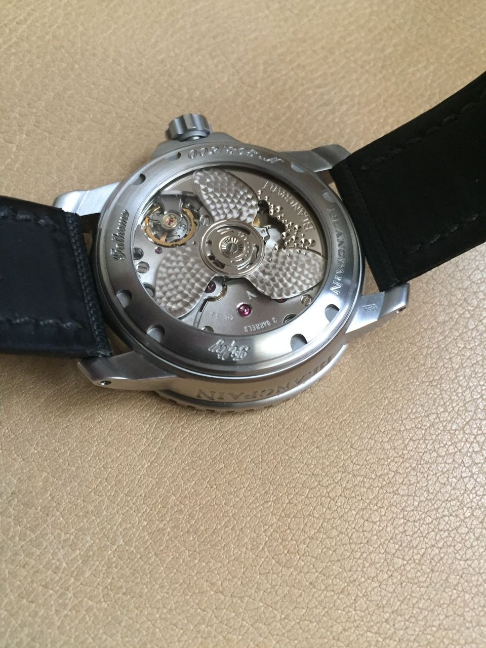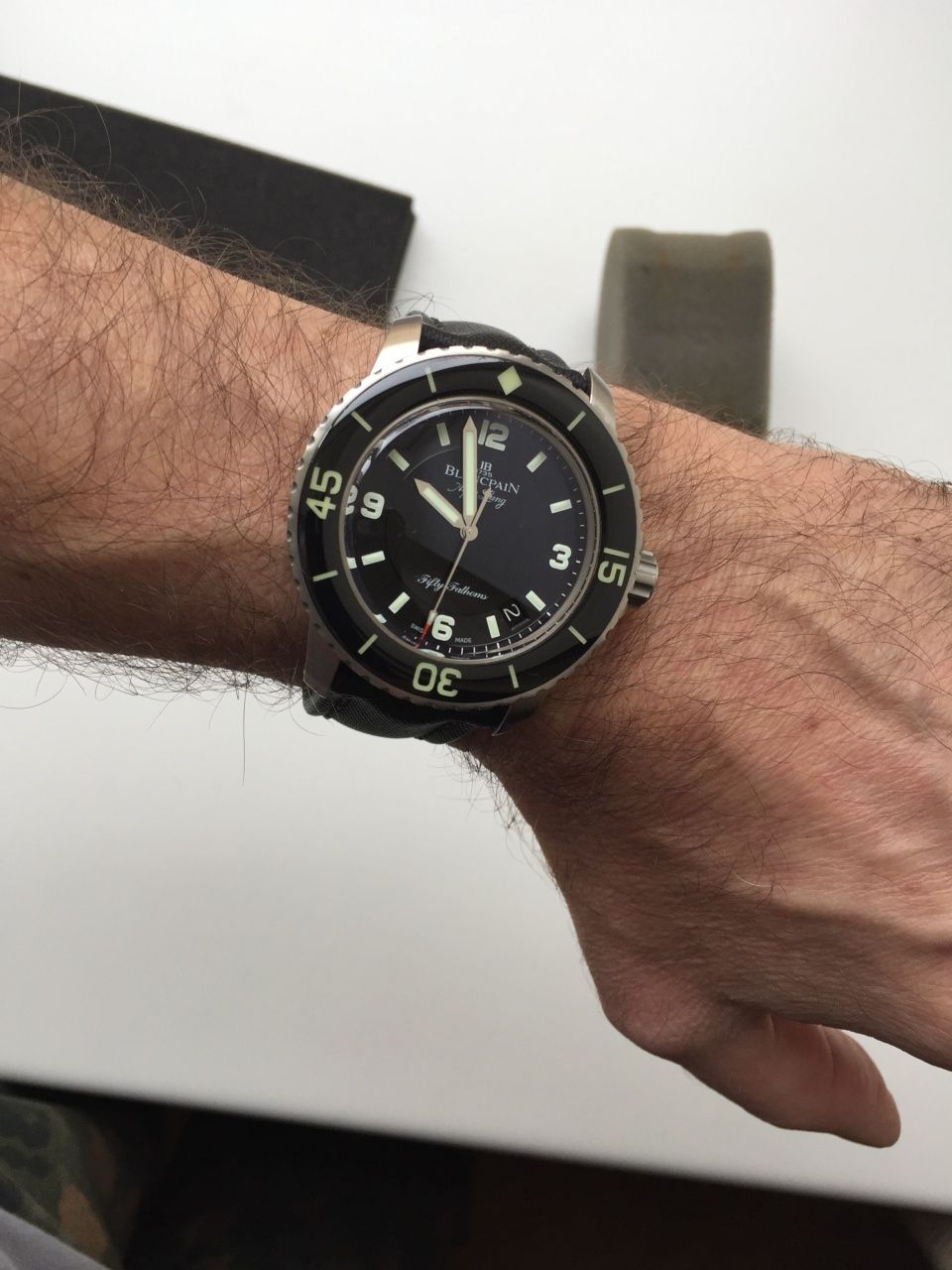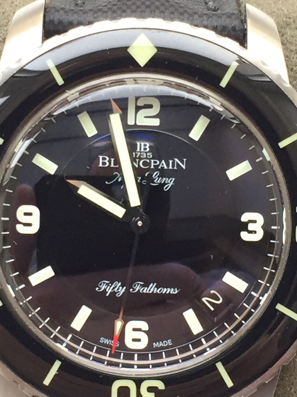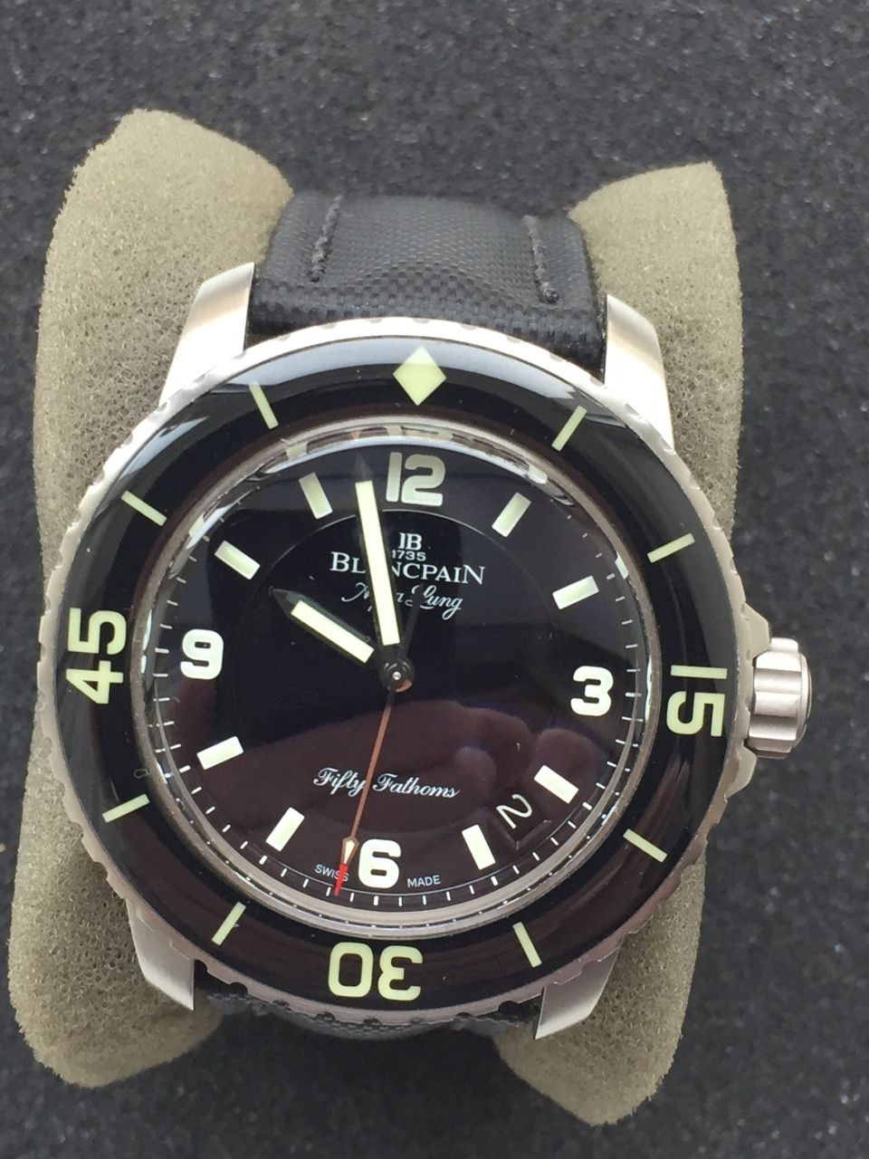 Из всех лимиток Fifty Fathoms 45 мм эта модель наиболее популярна из-за удачного дизайна циферблата, стрелок и уникального для каждых часов серии ротора автоподзавода.