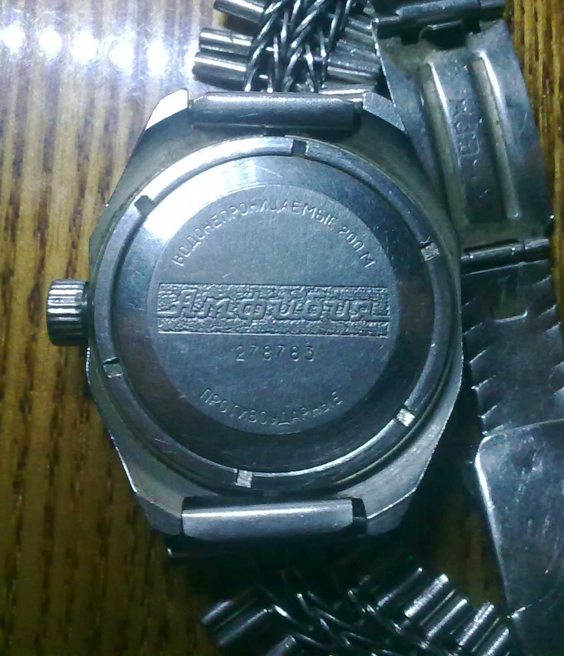 Привет! мне по наследству достались часы: Восток - Амфибия, вроде как говорят покупали их в 1989 году. проработали они не больше года, и в следствии ДТП у них не стал держаться завод, колесо завода прокручивается т.е на сжимает пружину. Описание: сразу при покупки сменили браслет на железный, спереди на циферблате написано: Восток, Антимагнитные, 17 камней, СДЕЛАНО В СССР, сзади на крышке: Водонепроницаемые 200м, АМФИБИЯ, 278783, противоударные. Сам вопрос в чем, что можете рассказать по максимуму об этих часах, модель, модель часового механизма ну и т.д и т.п