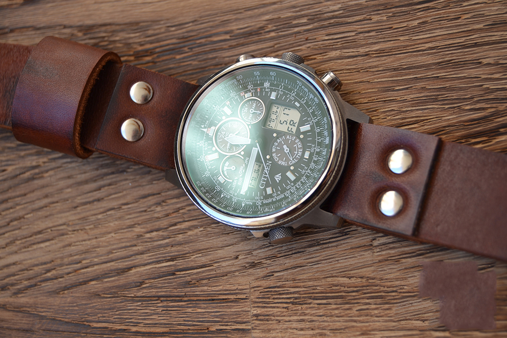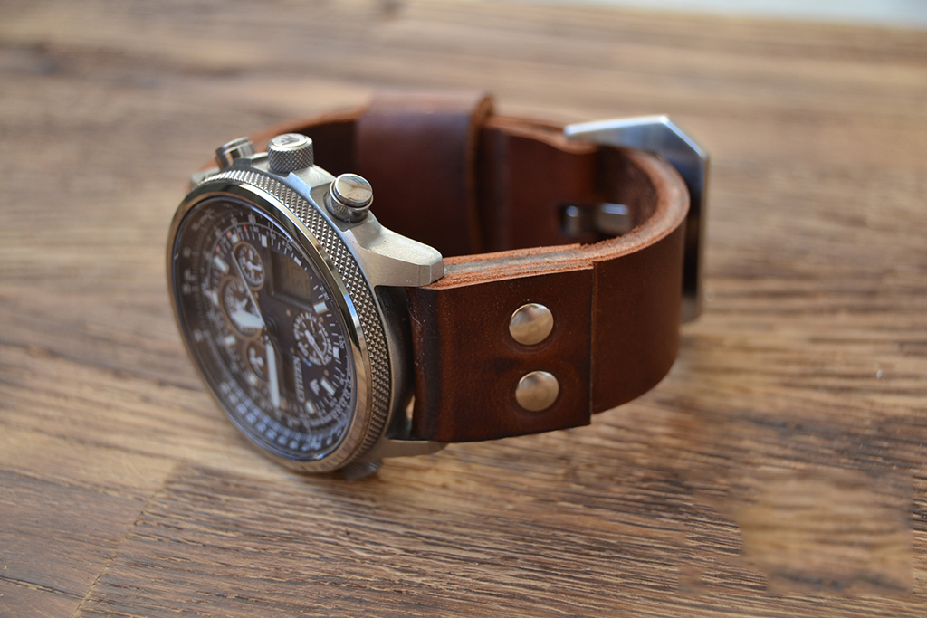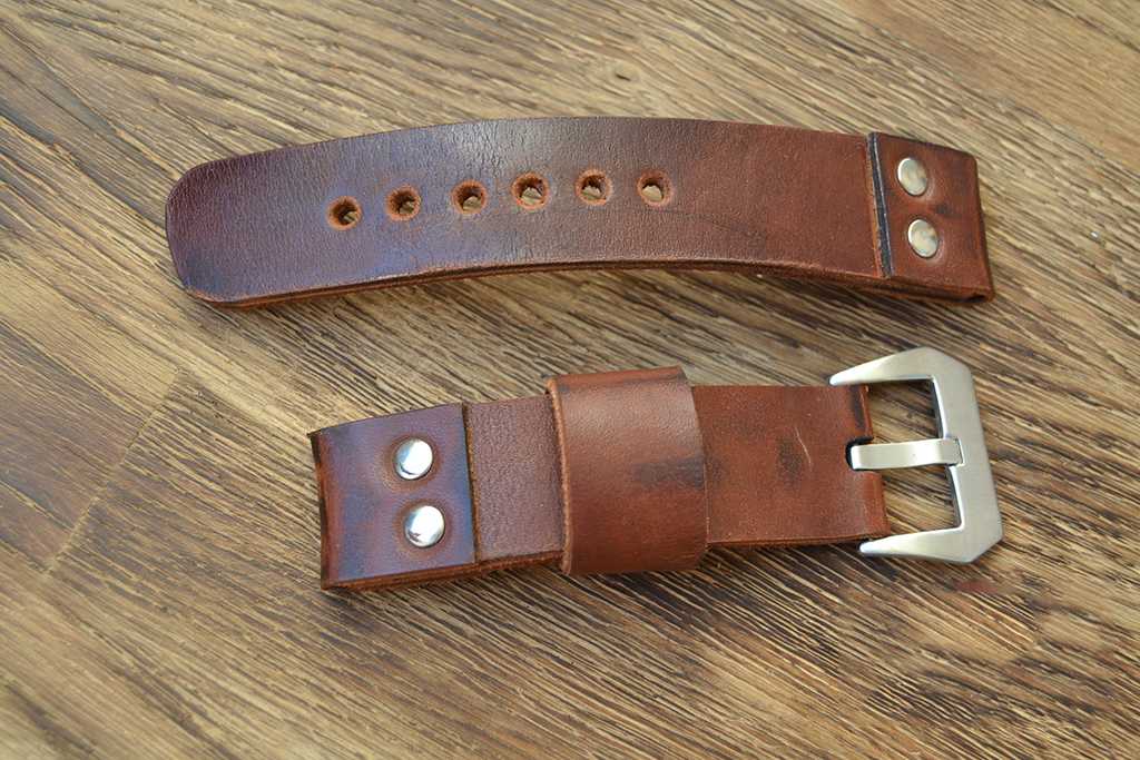 Ремешок для массивных часов из толстой кожи 24х24. Длина ремешка увеличена под крупное запястье.