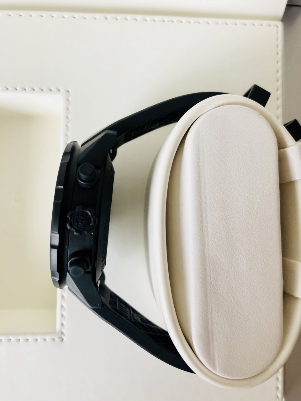 Не смотря на серьёзный размер, часы очень удобно сидят на руке и приятны тактильно за счёт специального каучукового покрытия.