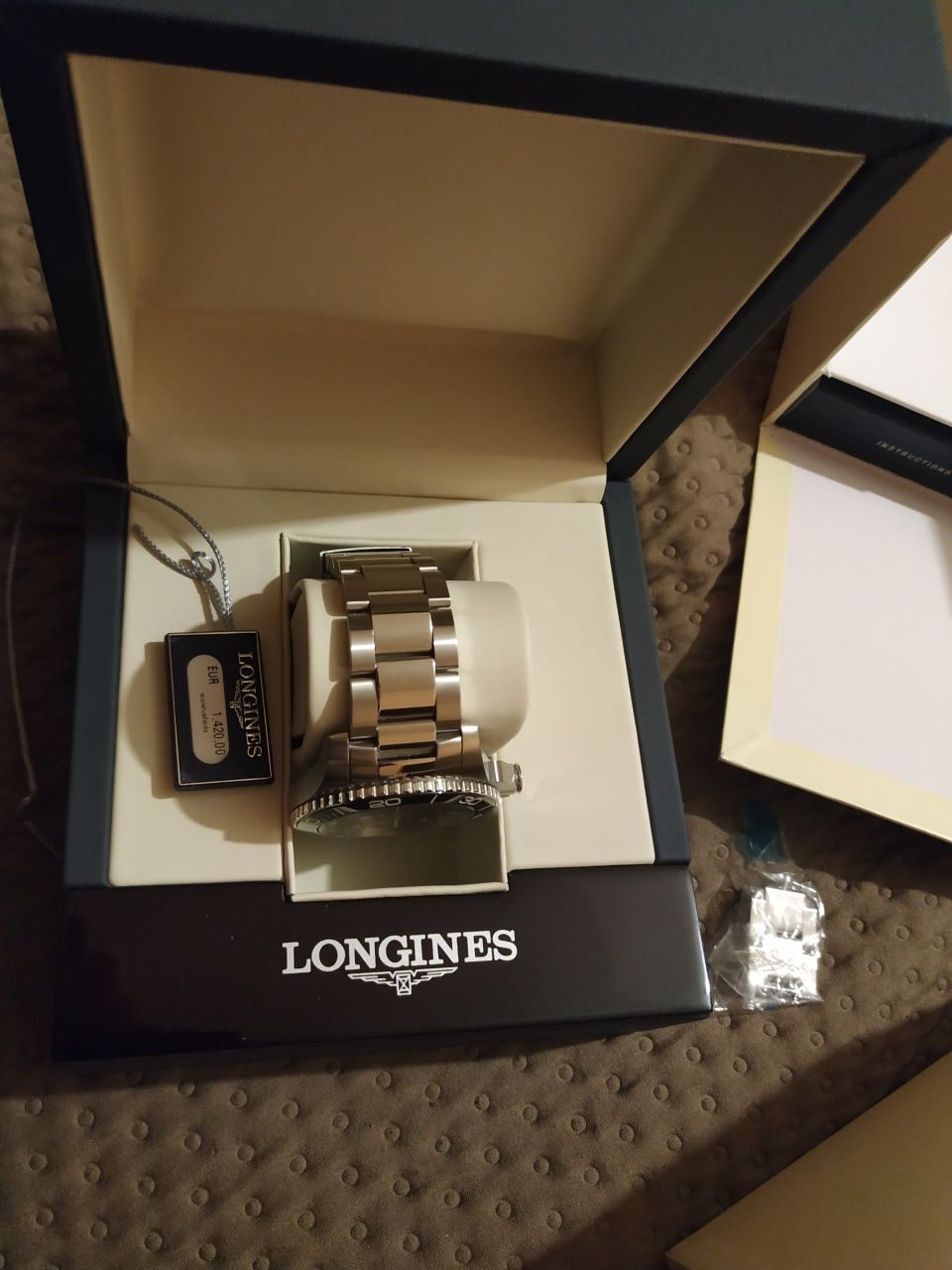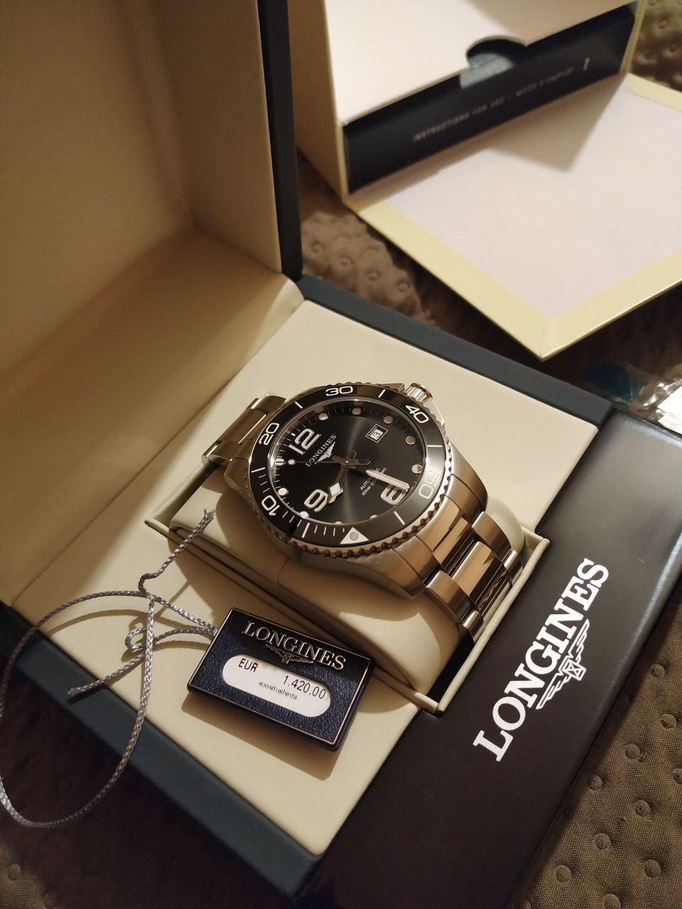 Продам новую модель гидроконквеста. Керамический безель. Ref. L3.782.4.56.6. Часы носил 3 месяца. Состояние отличное. Снял два звена. Звенья, разумеется в комплекте. Комплект полный, коробка, доки, гарантия. Цвет черный, диаметр 43 мм. Часы в спб. Могу отправить по 100 процентной предоплате. Актуально в течение недели, после сниму с продажи. Но это не значит, что у меня что-то горит. Я не бедствую, не надо писать заберу за столько-то.