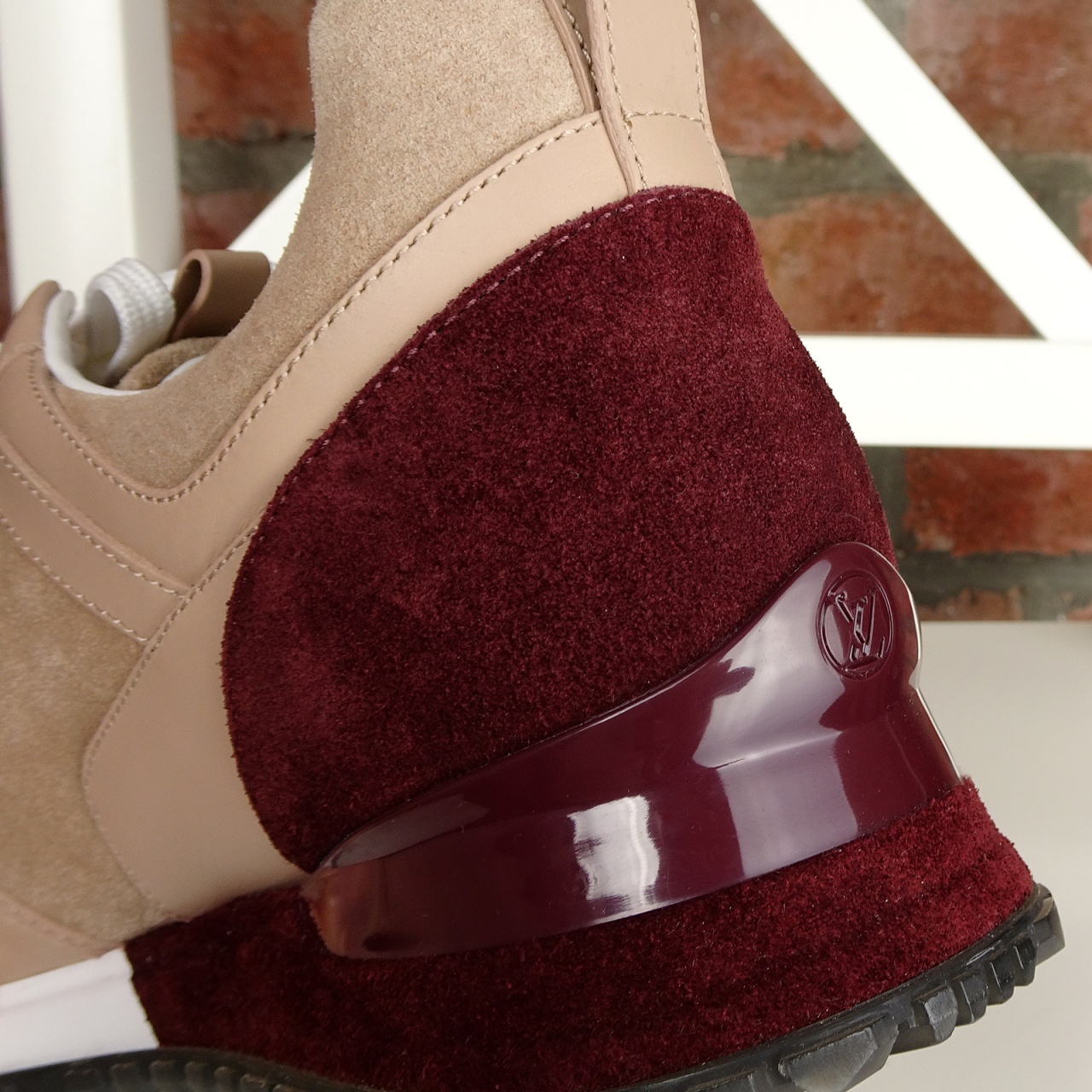 "Легендарная модель Run Away – стильная интерпретация кроссовок для бега, которая отличается высокотехнологичной подошвой с потайной стелькой, придающей ощущение дополнительной высоты и комфорта. Насыщенные оттенки кожи теленка и натуральной замши эффектно контрастируют с белыми вставками. Логотип LV Circle завершает эстетичный спортивный дизайн."