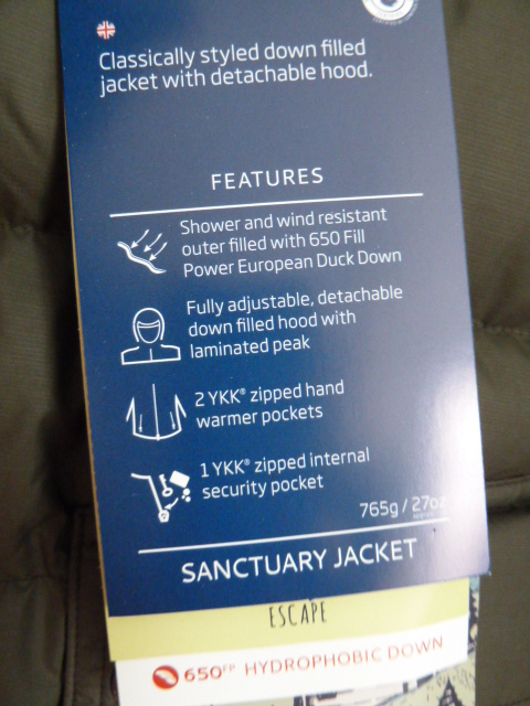Оригинальный новый пуховик с капюшоном Rab Sanctuary, бирки с описанием и инструкцией, упакован в пакет.