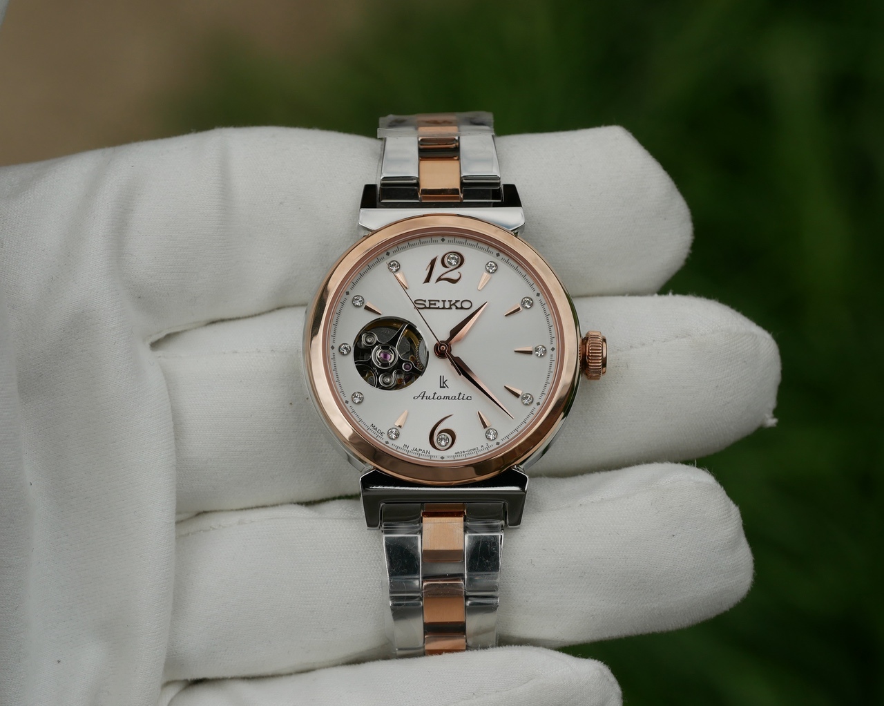 Светлый циферблат, накладные полированные метки сложной формы, накладное лого SEIKO