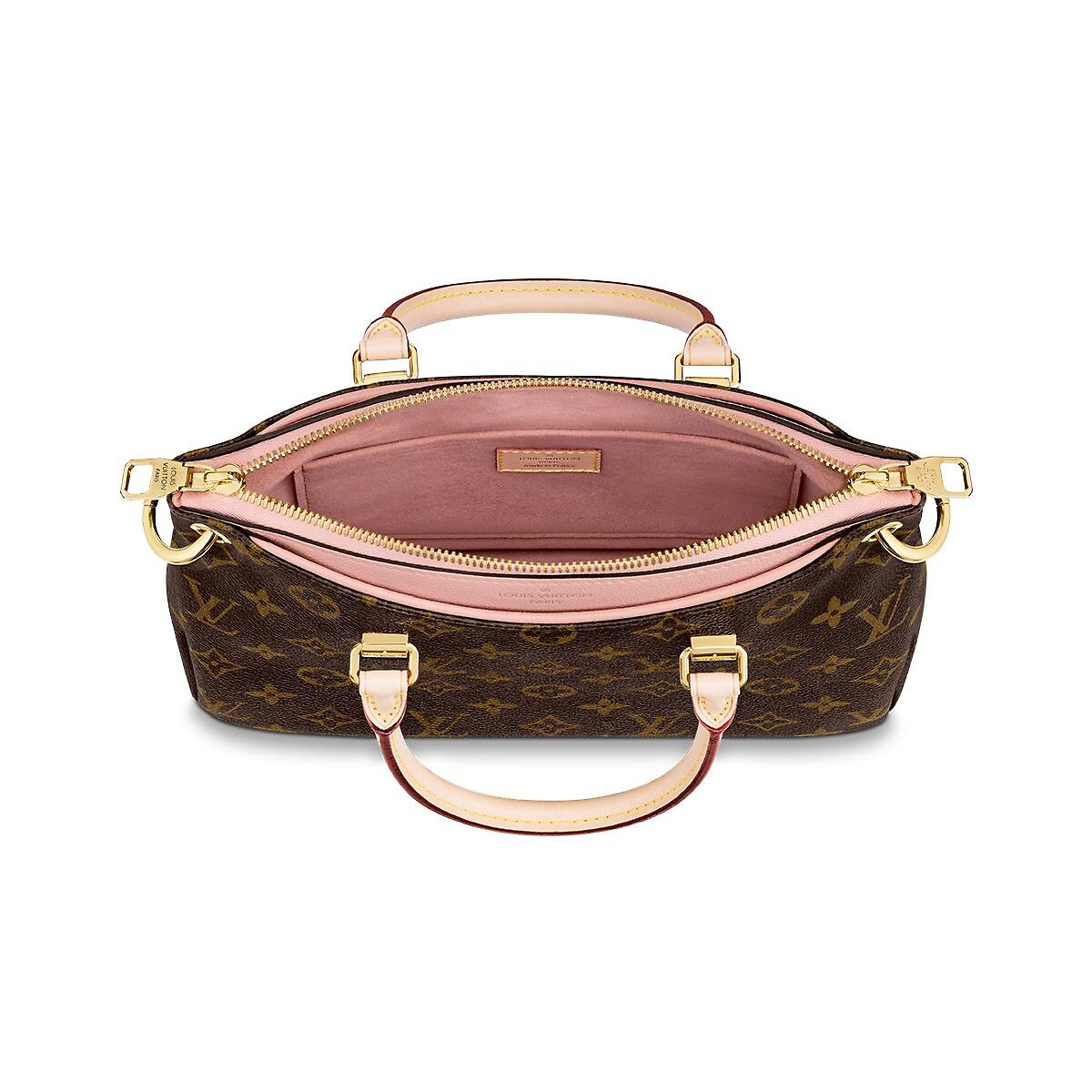 Материал - канва Monogram Canvas и натуральная зернистая яловая кожа пудрово-розового цвета.
