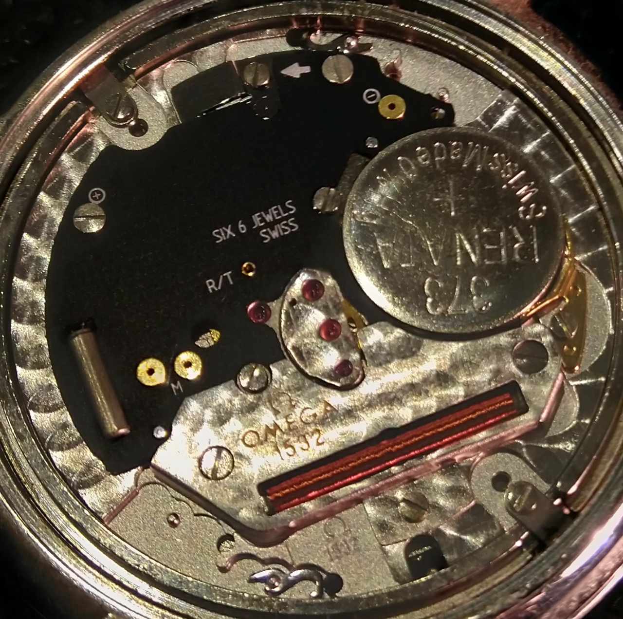 Кварцевый механизм Omega 1532 , с функцией даты.