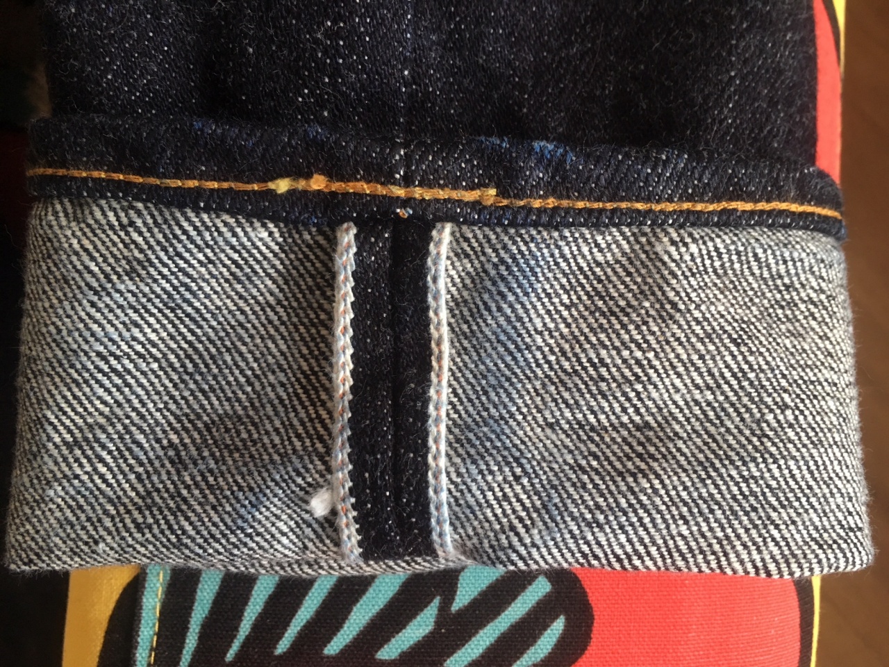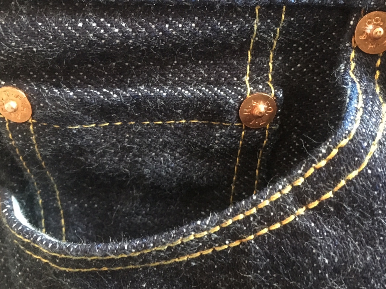 Деним этой серии плотностью 20OZ имеет тёмный цвет индиго и выраженную фактуру с вертикальными полосами. Новые джинсы довольно жёсткие. Но после недолгого разнашивания джинсы становятся очень комфортными и мягкими, и более выражено проявляется пушистость материала. Сам ношу джинсы этой серии, но в 29 размере.