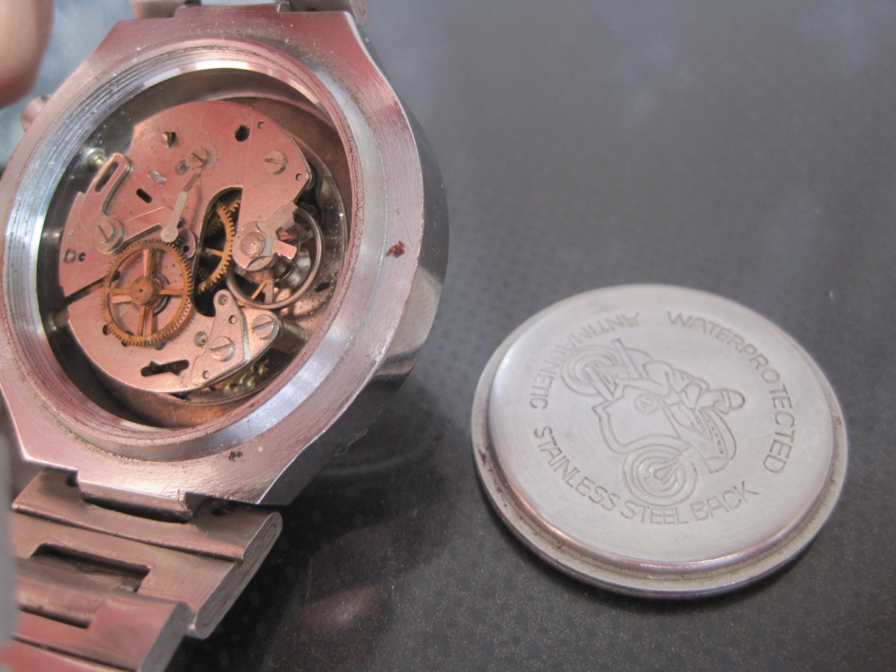Хронограф Ruhla мотоциклист (с изображением мотогонщика на задней крышке)