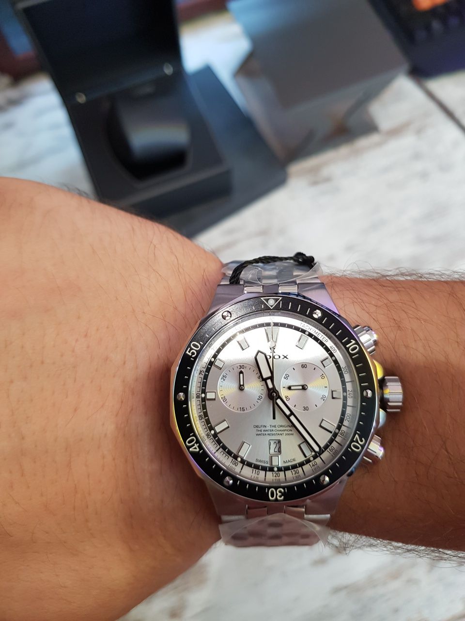 К Вашему вниманию предлагаю красивейший швейцарский хронограф EDOX Delfin Original Quartz Chronograph 10109 3M AIN.