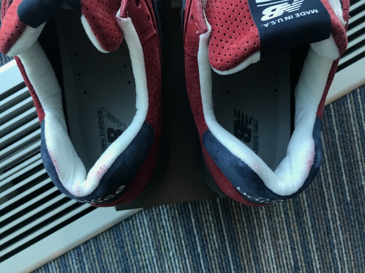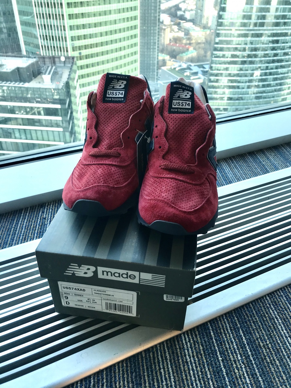 Кроссовки новые с коробкой. Есть ньюанс в виде едва заметного окраса пятки замшей - в магазине вытащили разделительные бумаги(видно на доп фото).