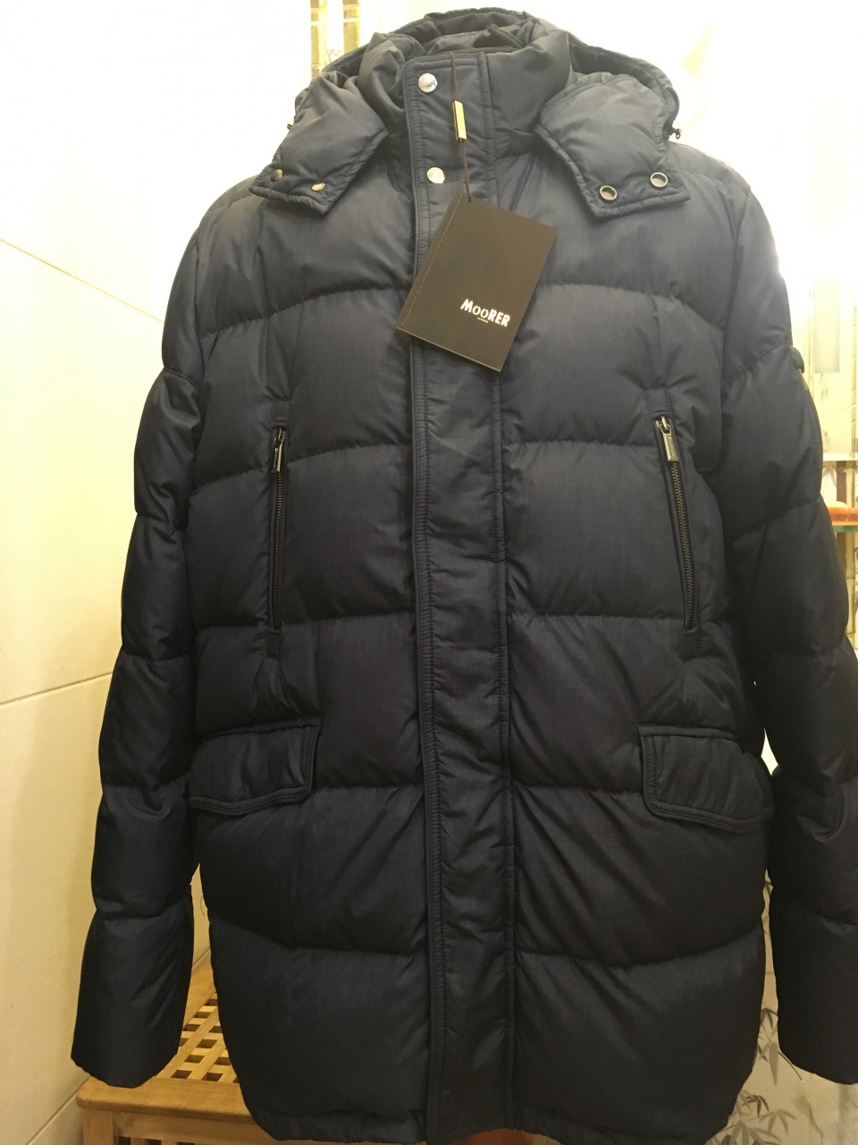 Продается новый зимний мужской простеганный пуховик итальянского бренда МООRER превосходного исполнения, плотная , не продуваемая ткань, темно-синего цвета, логотип, воротник-стойка на кнопках, отстегивающийся полноценный капюшон, молния с двойным ходом и кнопки, фурнитура с логотипом бренда, наружные накладные карманы на кнопках, два верхних прорезных кармана на молнии, на рукаве прорезной карман на молнии, внутренние карманы на молнии, по поясу внутри утяжка для лучшей посадки, внутренние трикотажные манжеты рукавов, внутри гусиный пух , состав: 100% полиэстер, все бирки прилагаются , гарантированный 100 % оригинал, размер 58 (IT) , производство Италия.