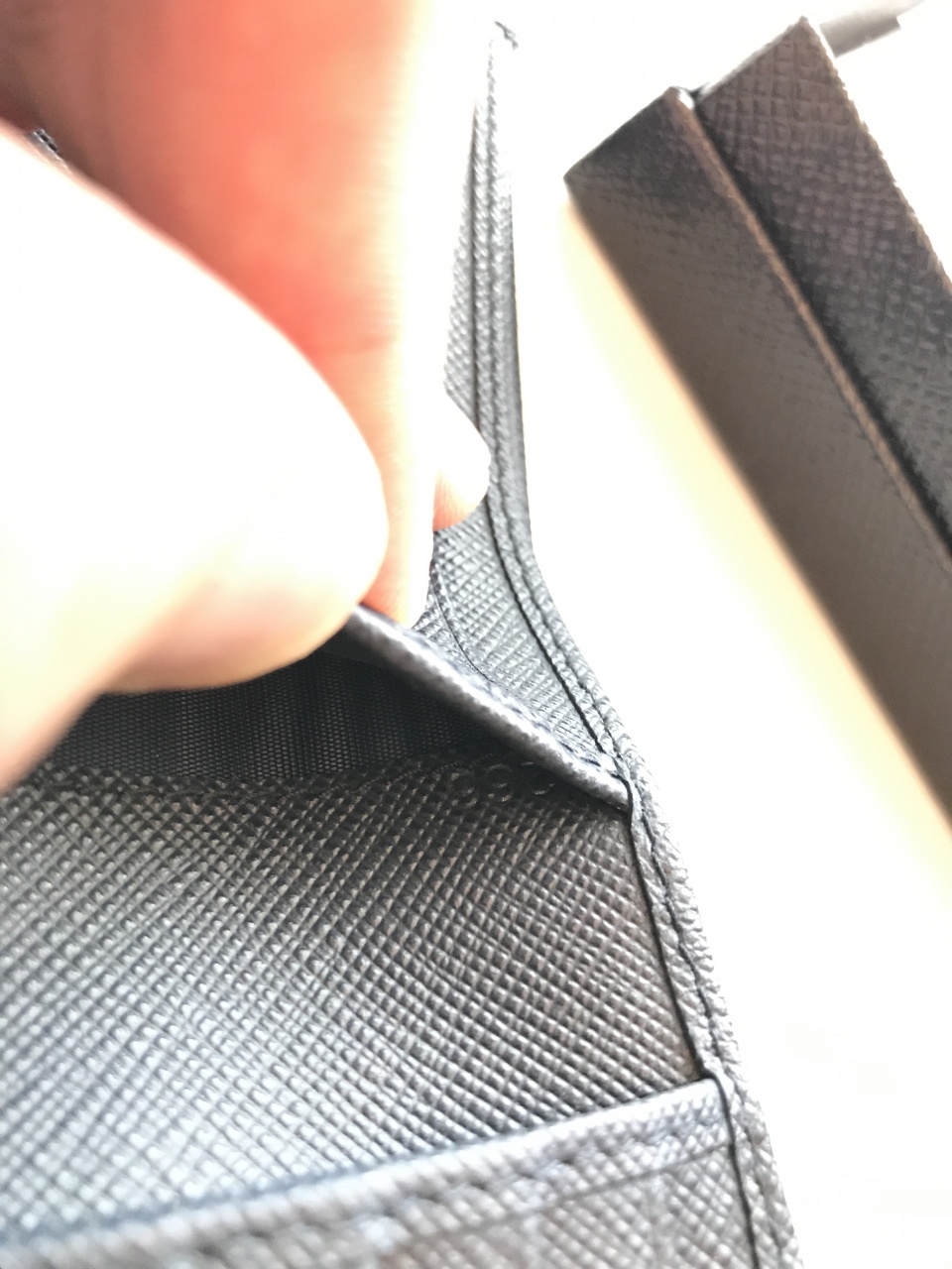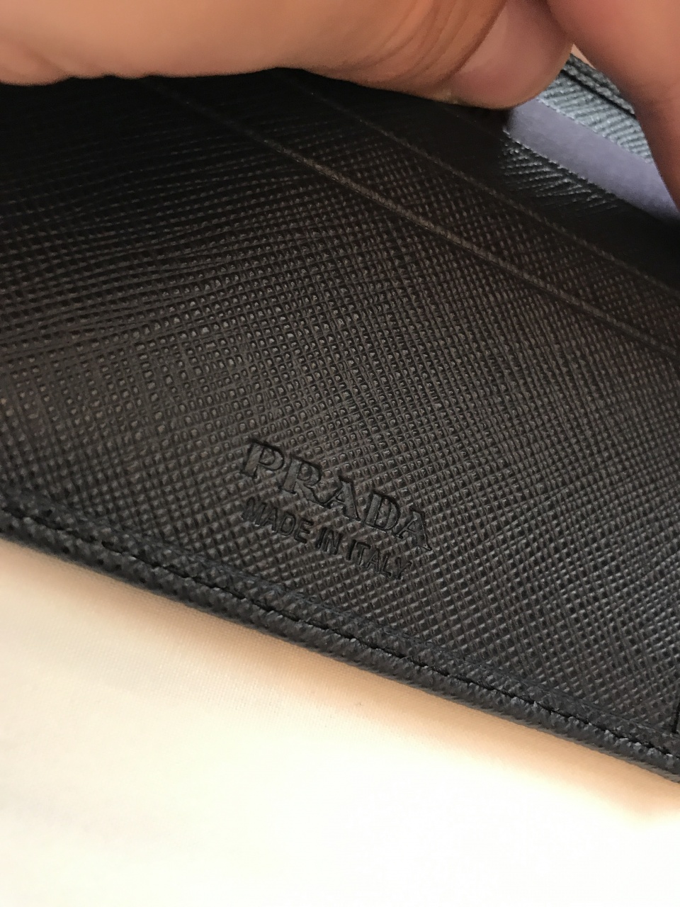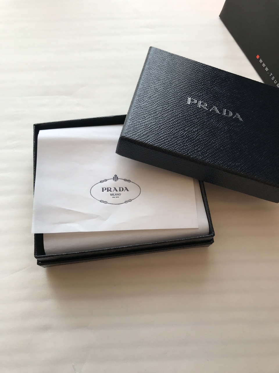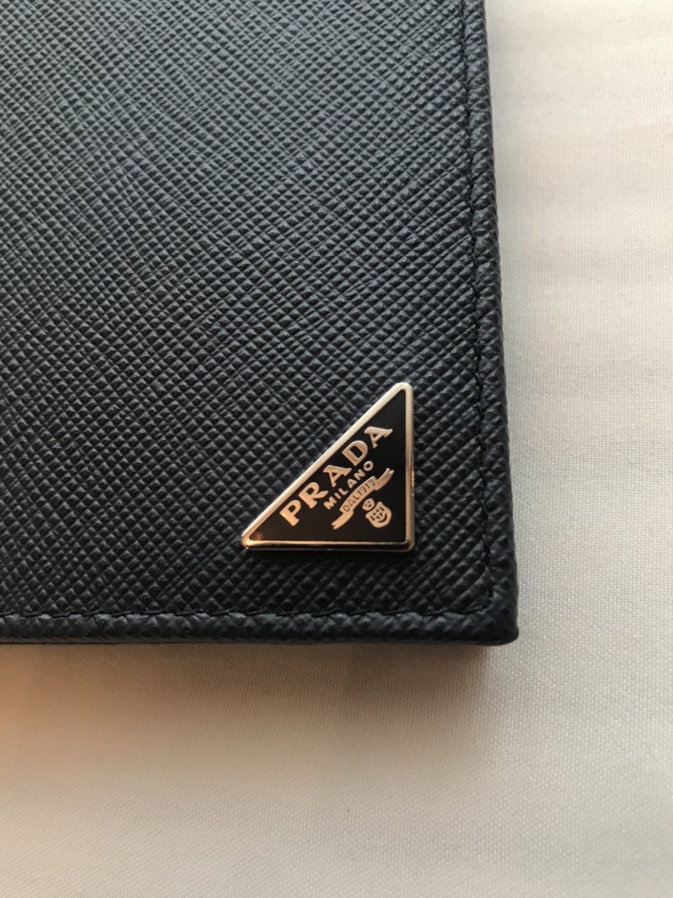 Удобный компактный карманный формат - размеры 9,5 на 11 см. Легендарная кожа Saffiano, на передней панели треугольный металический патч с лого PRADA Milano и гербом, внутри кожа Saffiano с тиснением лого PRADA made in ITALY. Цвет темно-синий (Baltico), очень хорошо смотрится, легко сочетается с одеждой и другими аксессуарами. На стенке левого бокового отделения секретный тисненый код.