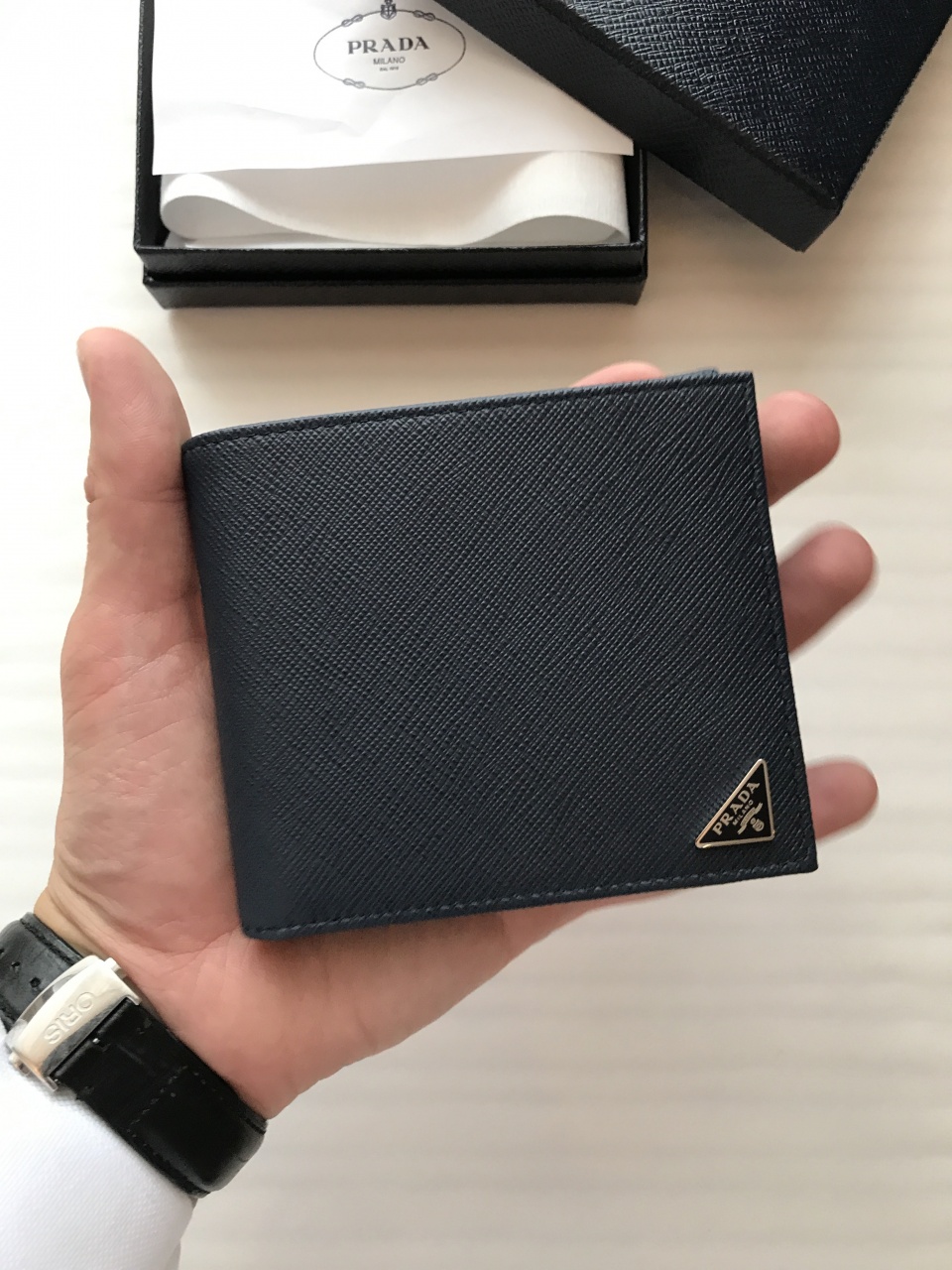 Бумажник PRADA. Треугольное металлическое лого. Кожа Saffiano. Цвет темно-синий (Baltico) - Часовой форум Watch.ru