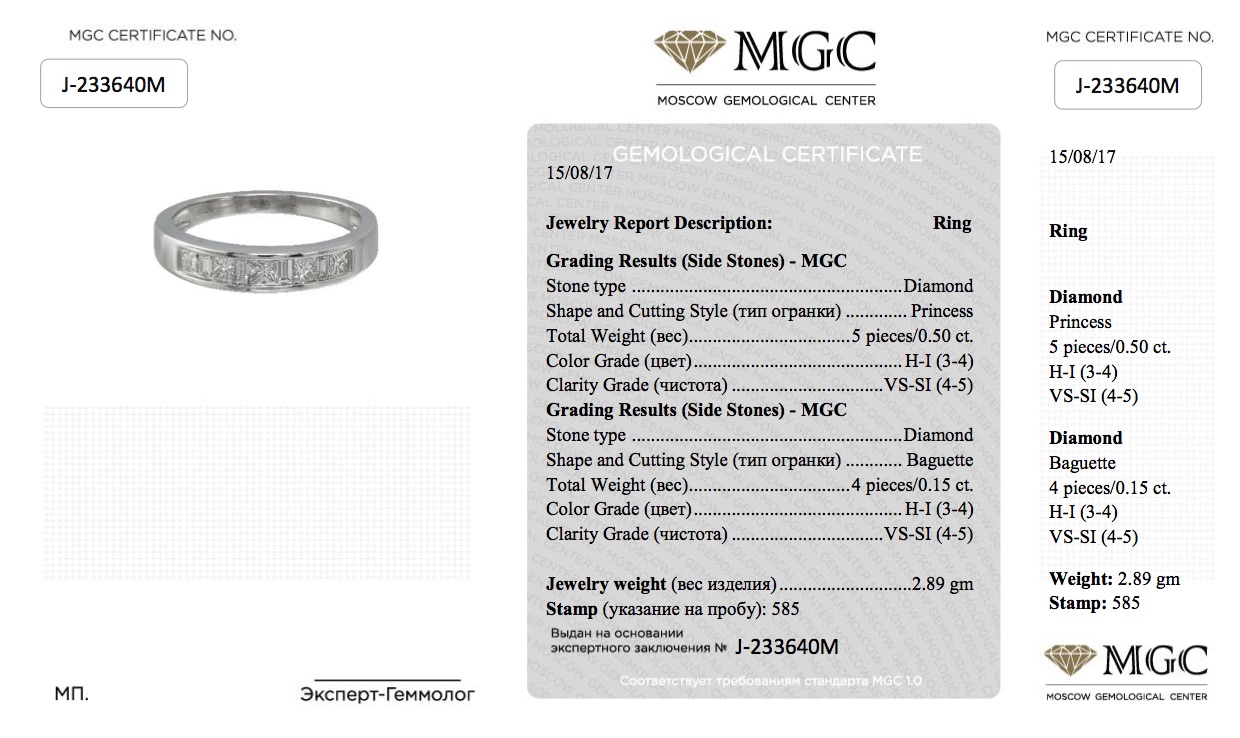 Обручальное кольцо из белого золота с бриллиантами 0,65 карат (сертификат МГЦ)