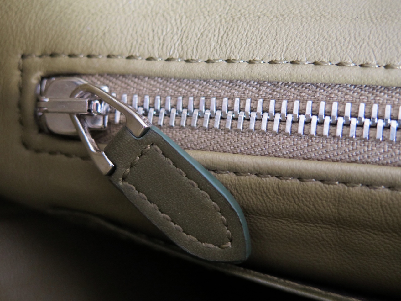 Внутри рюкзак изготовлен из кожи ягнёнка оливкового цвета в сочетании с буйволиной кожей цвета хаки, и имеет основное вместительное отделение для переноски различных вещей, отделение на молнии для документов формата А4 (с внутренней отделкой из износостойкого текстиля), один большой накладной карман для переноски планшетного компьютера или компактного ноутбука, двухсекционное отделение для переноски телефонов, паспорта или иных документов.