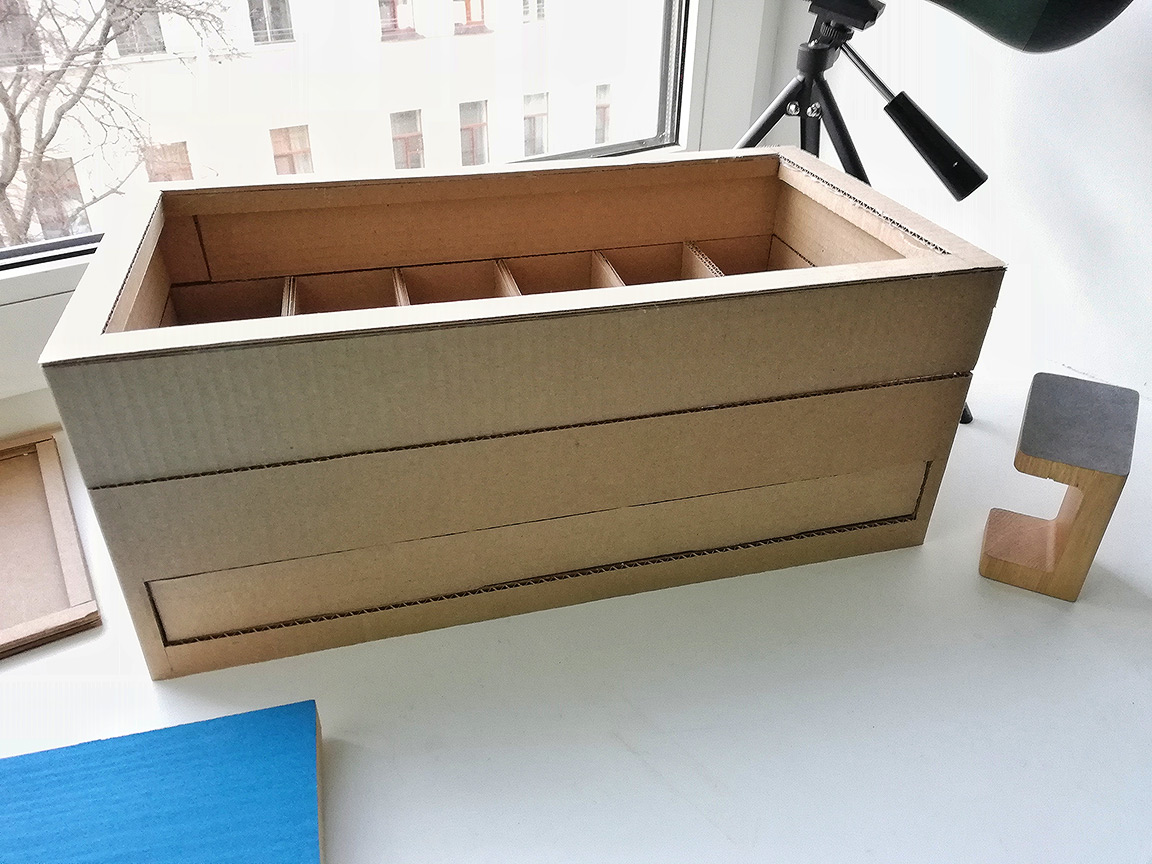 Вот в чем прелесть: немного картона, клея, чуть времени и можно играться, пробовать решение. Копеечные затраты, но они позволяют прочувствовать решение!