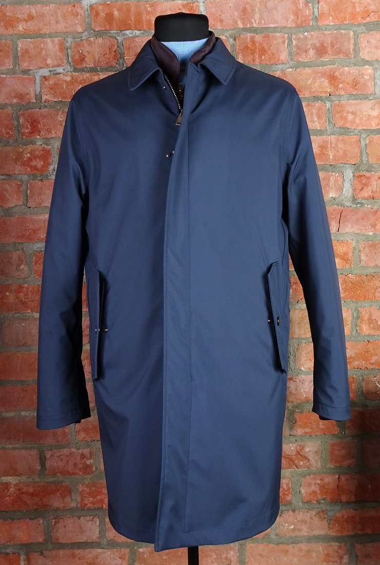 Куртка имеет молнию-перевертыш, благодаря чему куртку можно прикреплять к плащу двумя разными способами - либо пристегивать как подкладку, либо она может закрывать грудь даже когда не застегнут сам плащ.
