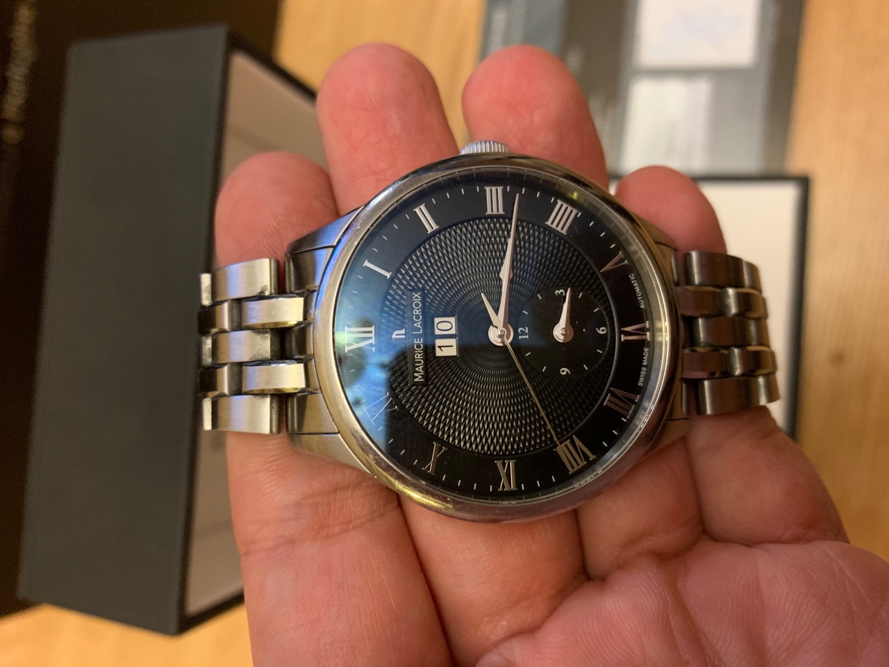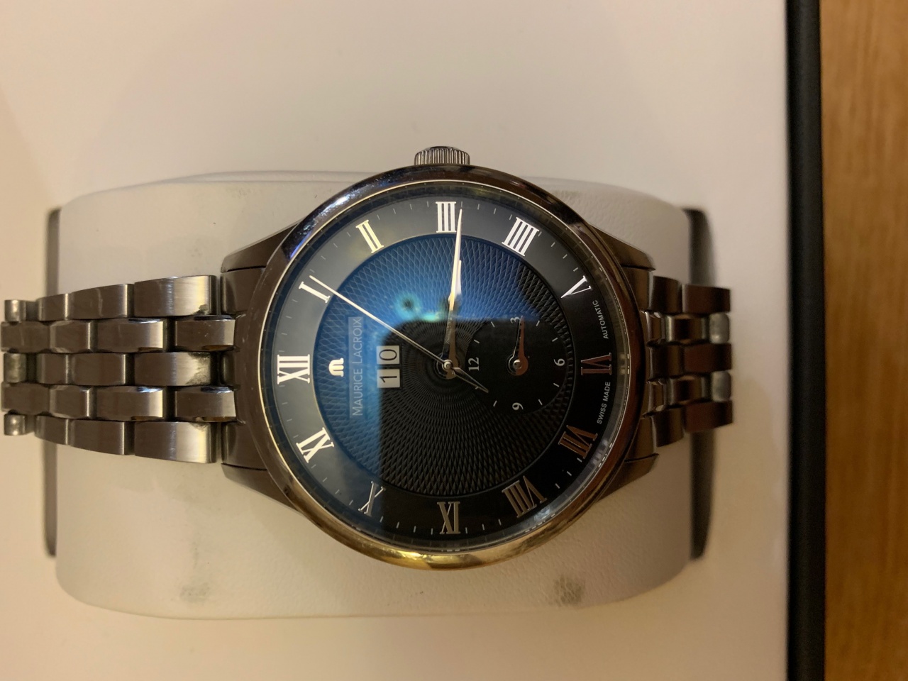 Продаю часы Maurice Lacroix Masterpiece Big Date GMT в отличном состоянии, выглядят, как новые. Фирменный браслет из нержавеющей стали.