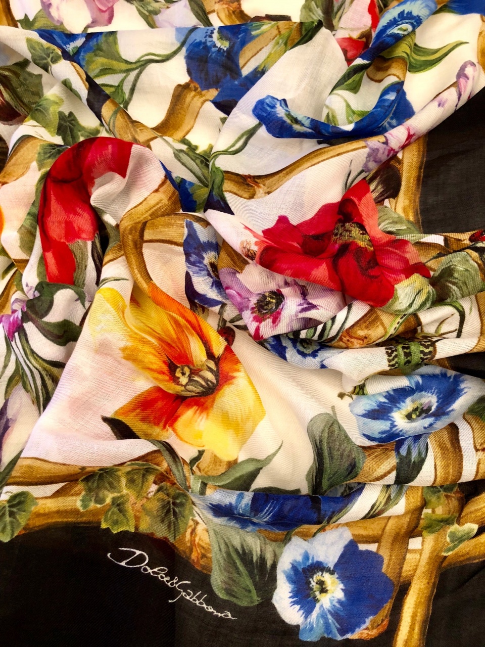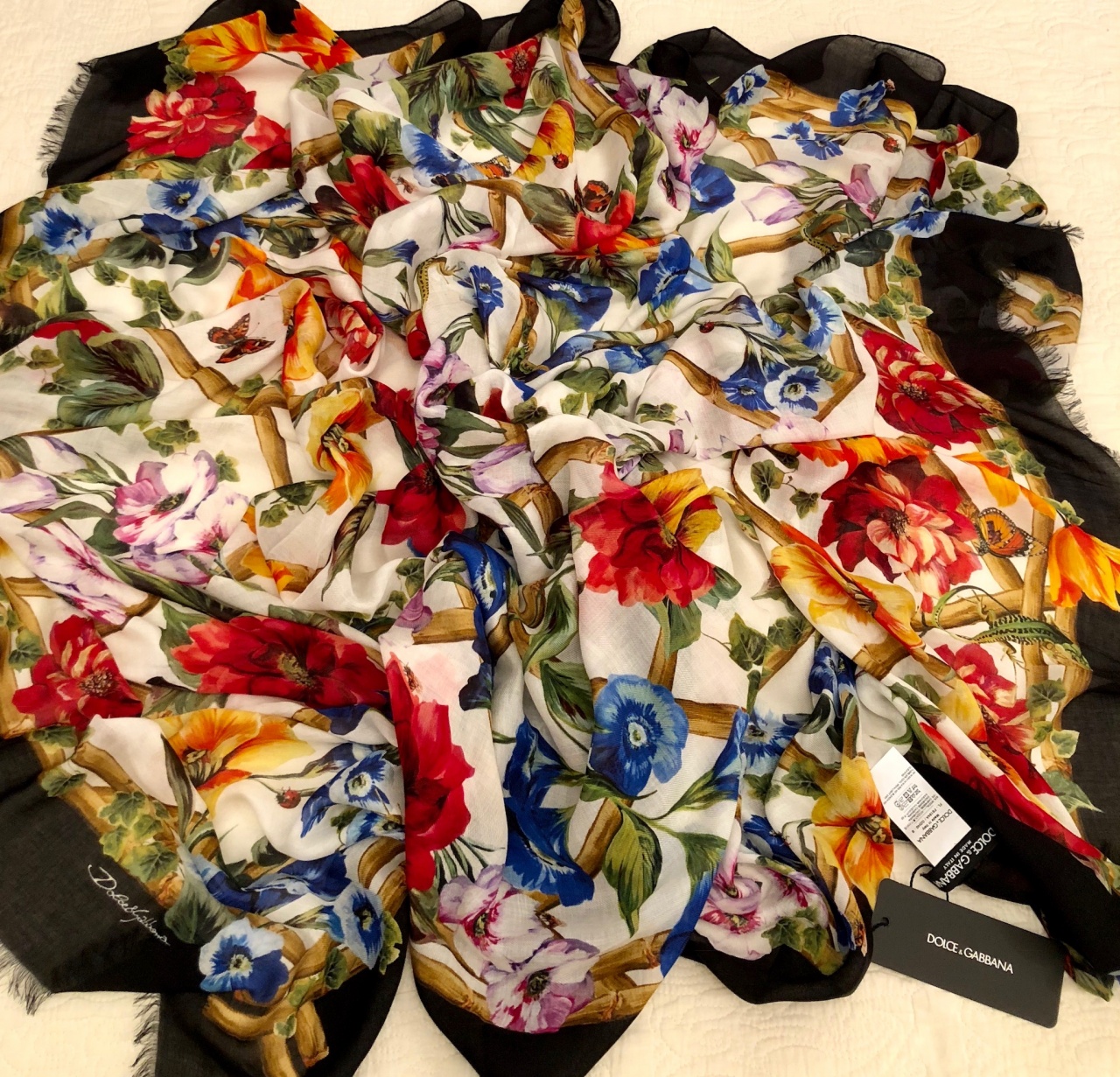 Палантин Dolce & Gabbana. Теплый, КАШЕМИР С ВИСКОЗОЙ Расцветка: яркие цветы и черный кант