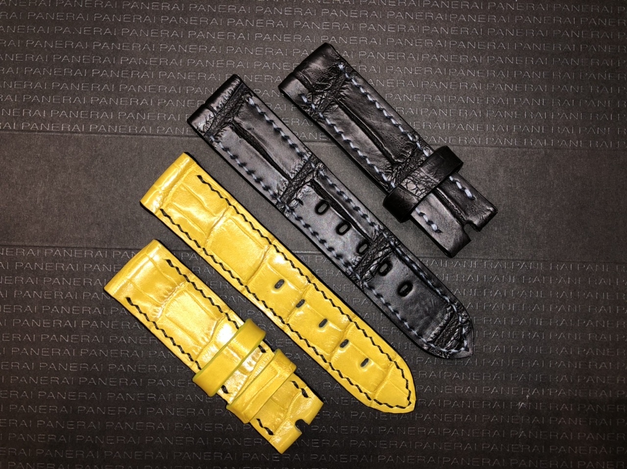 Черный крок с серо+голубой нитью и желтый крок с черной нитью соответственно