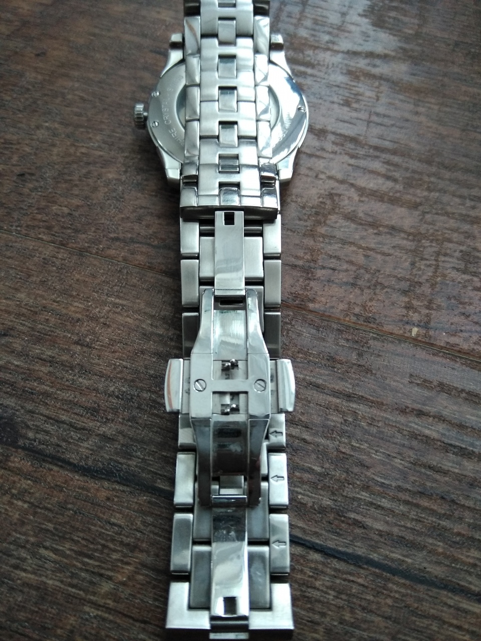 В наличии все звенья браслета, коробка, руководство. Новый кожаный ремешок бонусом. Присутствуют минимальные следы носки.
