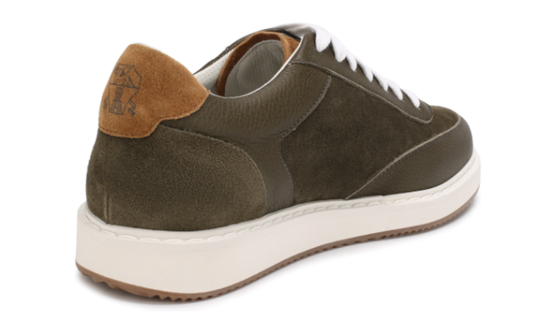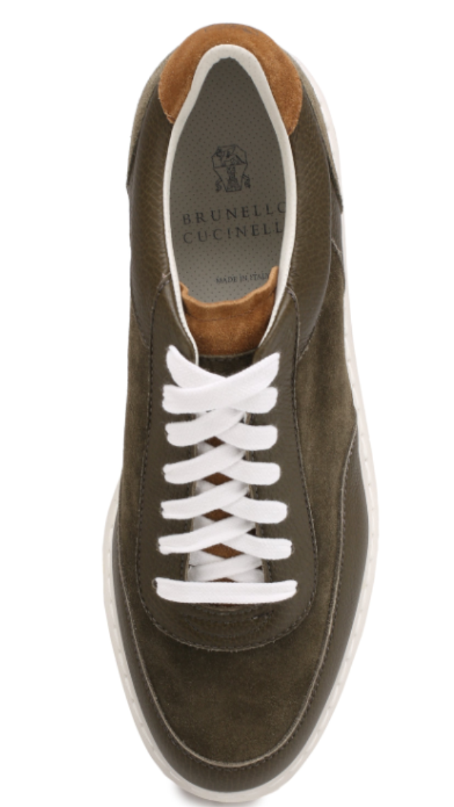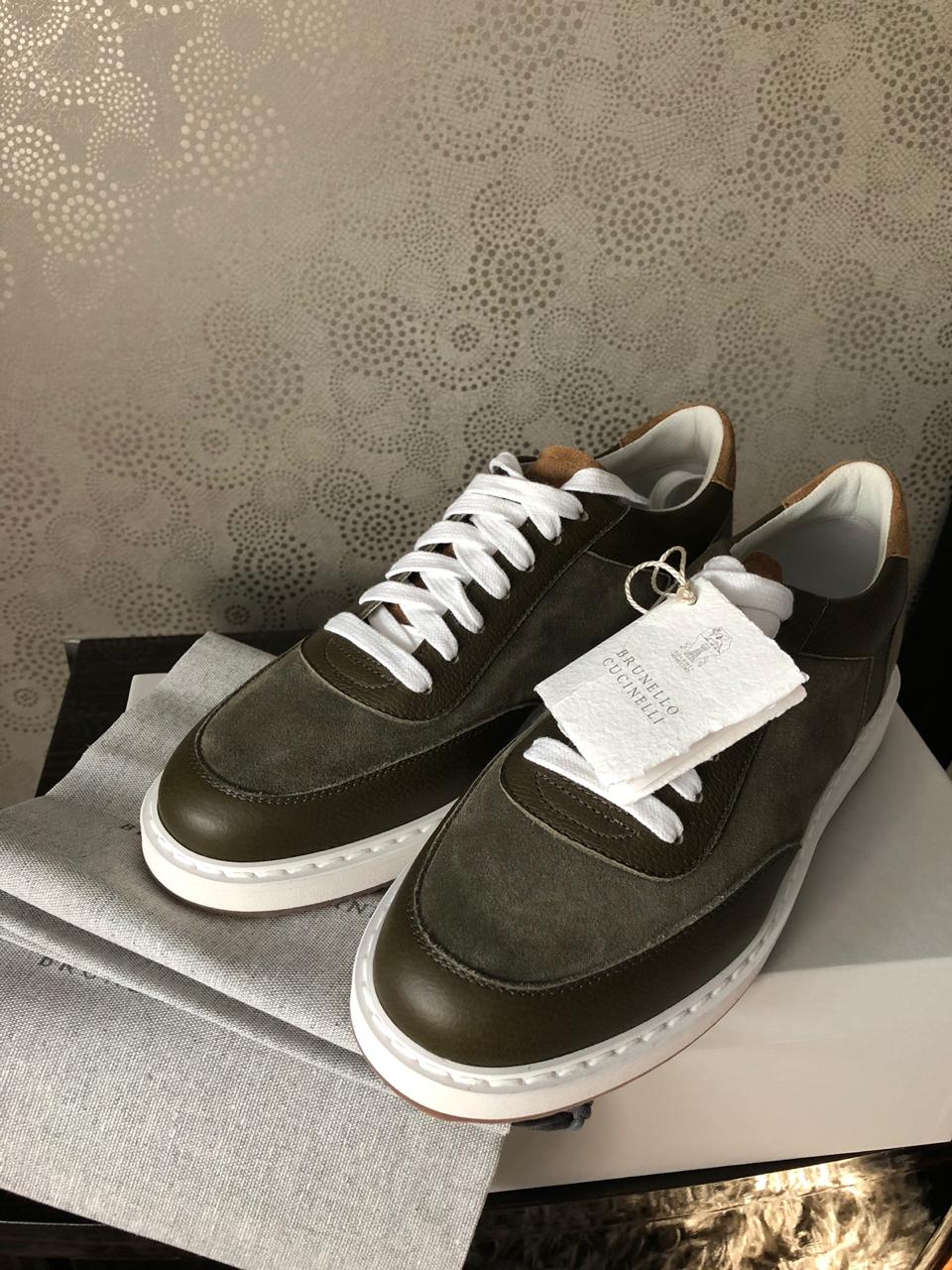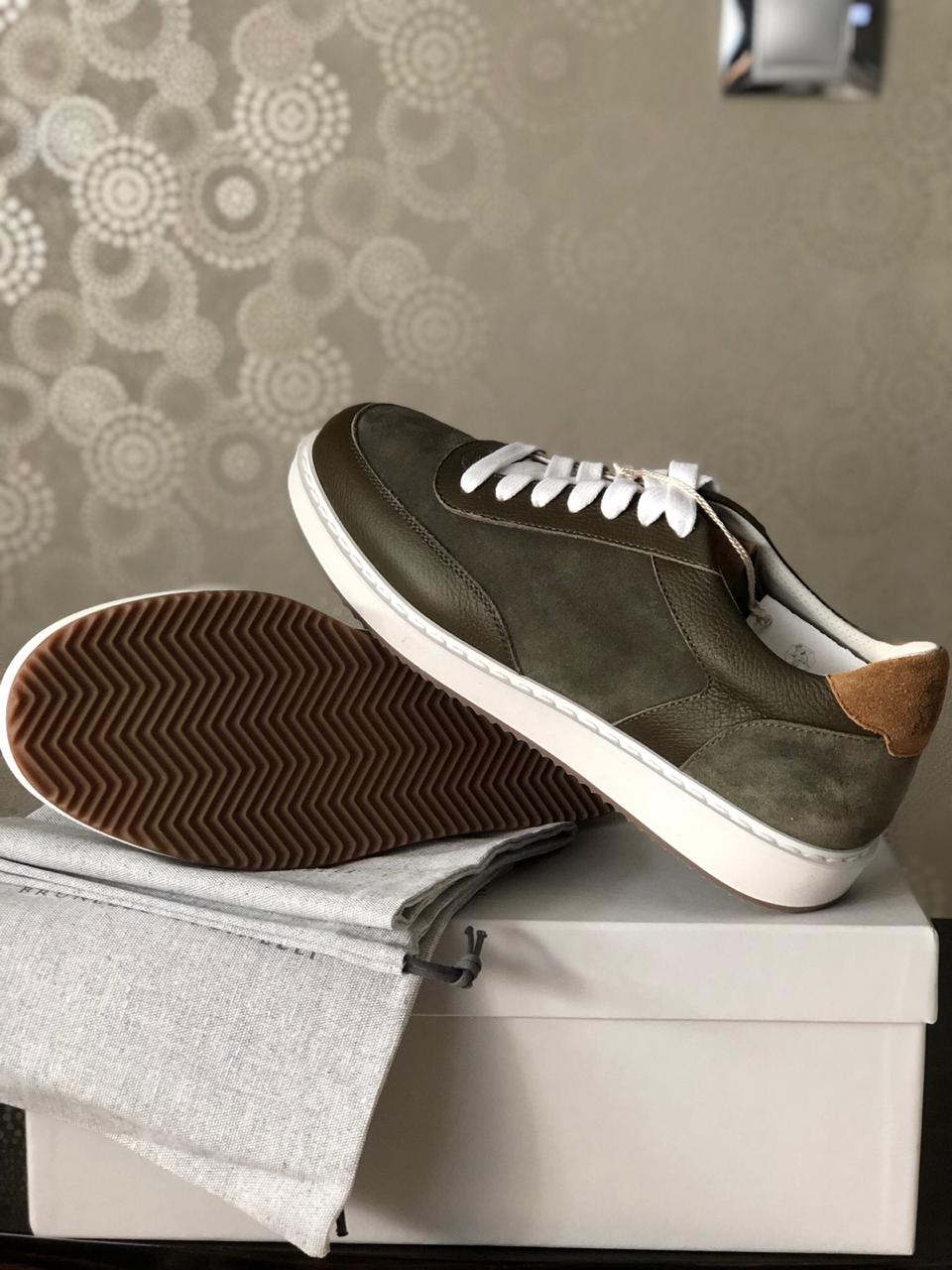BRUNELLO CUCINELLI новые мужские сникеры из телячьей кожи с зернистой текстурой и стираной замши (42 размер)