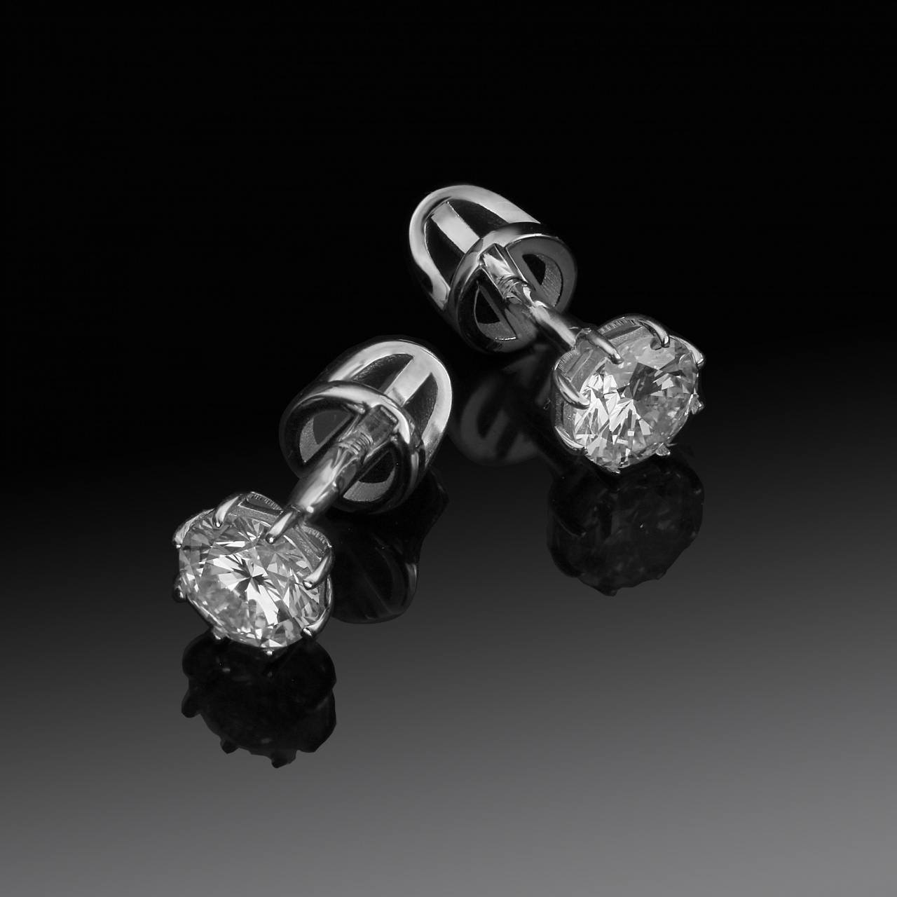 Серьги-пуссеты из белого золота с бриллиантами 0,84 карат (сертификат МГЦ)
