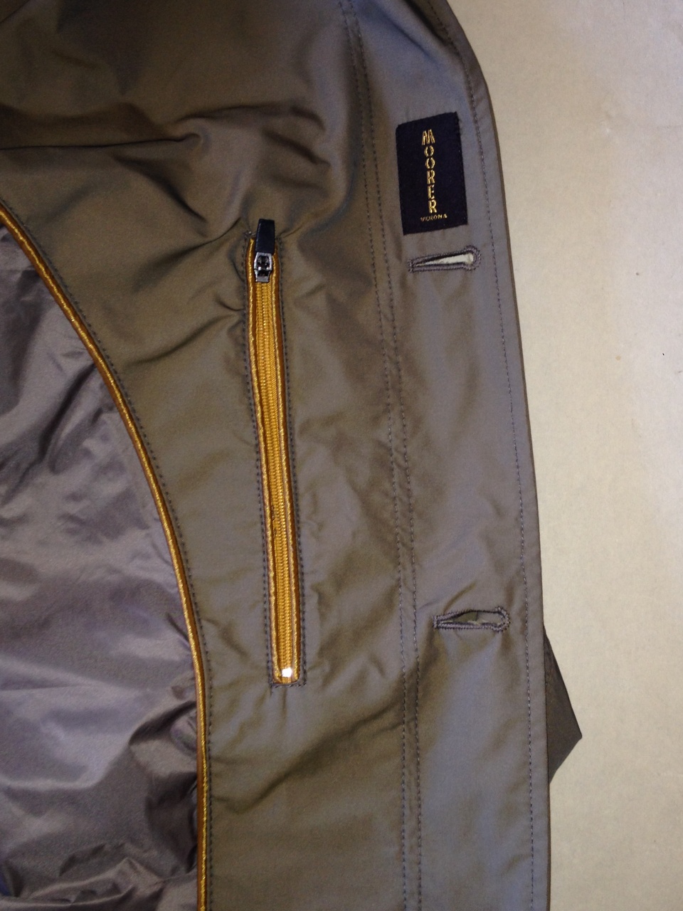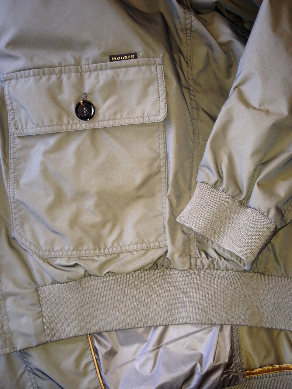 Продается новая мужская легкая куртка-бомбер итальянского премиум бренда MOORER превосходного исполнения , цвета хаки, голограмма, высокий воротник , застегивается на пуговицы с логотипом бренда, наружные накладные карманы на пуговицах+прорезные , манжеты рукавов на двойных пуговицах, внутренние карманы на молнии, трикотажные: воротник, низ куртки ( шерсть+акрил), состав ткани: 100% полиэстер, все бирки прилагаются , гарантированный 100 % оригинал, размер 56(IT), производство Италия Бренд по достоинству оценят любители одежды класса де люкс, изделие смотрится дорого и стильно, отличное сочетание цена-качество.