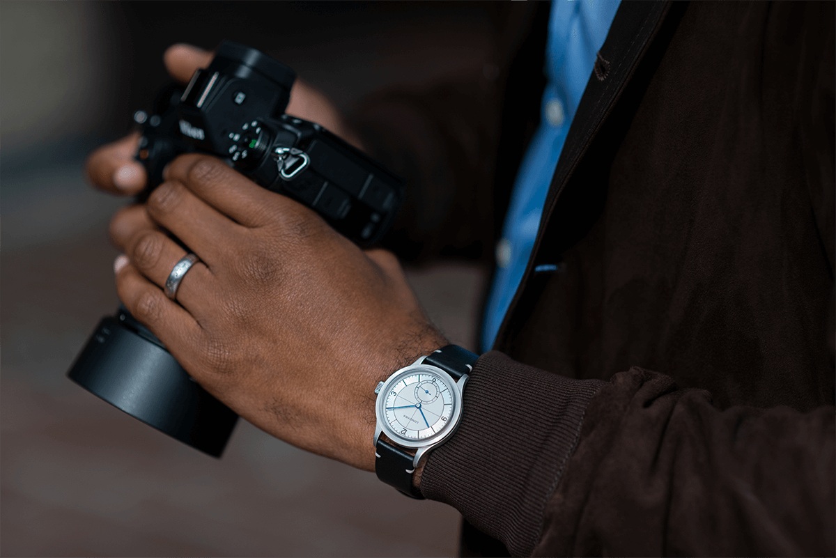 Такой спорный элемент как индикатор даты, зачастую вносящий дисгармонию в геометрически выверенный рисунок циферблата, отсутствует. Новинка комплектуется автоматическим Калибром L893.5, эксклюзивно производимым для марки фабрикой ETA, с кремниевой пружиной баланса и 64-часовым запасом хода и поставляется на синем либо черном кожаном ремешке.