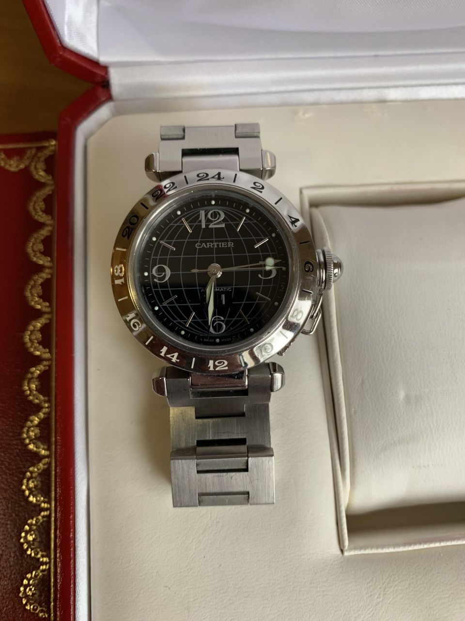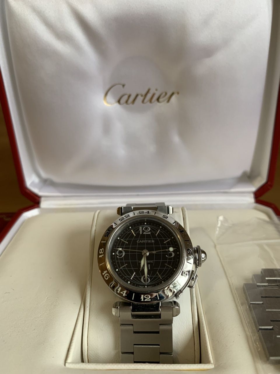В продаже женские (идут как унисекс, но больше конечно женские) часы Cartier de Pasha Seatimer GMT Big Date.