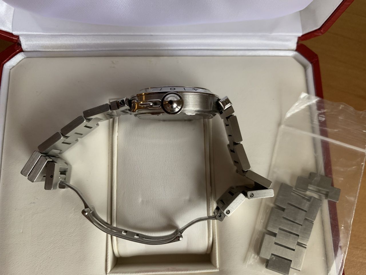 Часы куплены в 2007 году в Санкт-Петербурге у официального дилера. Все время в одних руках. Полировка никогда не делалась. Часы последние пару лет не носились, поэтому может потребоваться провести профилактическое ТО (а может и не надо). Присутствуют следы носки, но ничего такого, чтобы не убралось полировкой нет. Браслет уменьшен, но все снятые звенья в наличии.