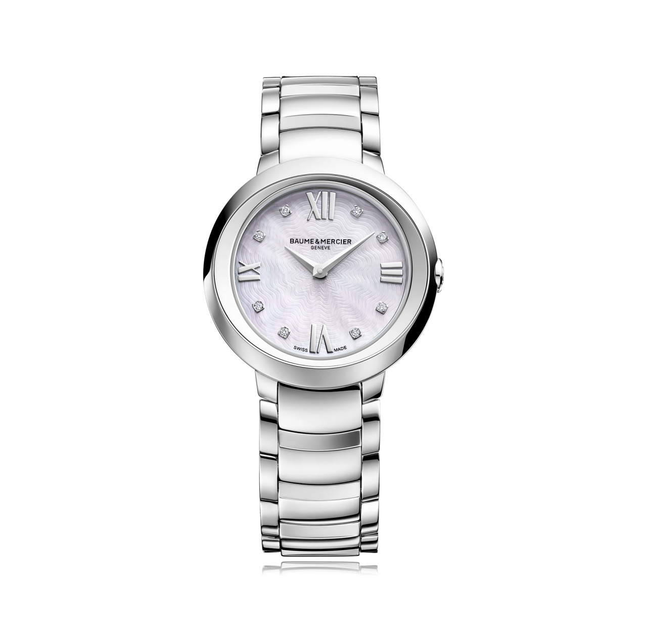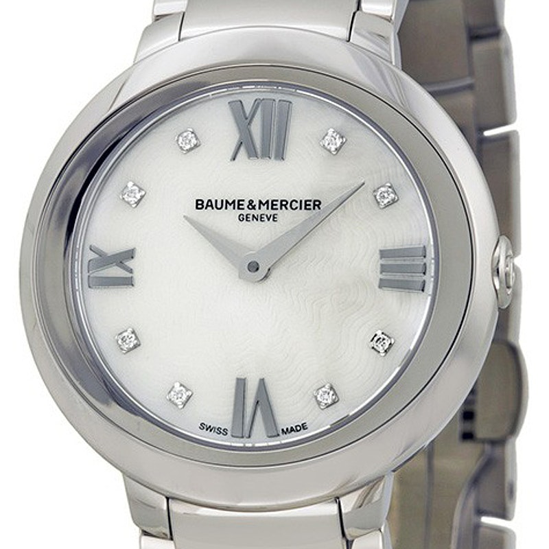 Женские часы серии Promesse представляют собой композицию, объединившую в себе современный смелый дизайн, идеально гармонирующий с лучшими традициями мануфактуры Baume & Mercier. Инкрустация бриллиантами превращает элегантные часы в изысканное украшение. Часы произведены в стальном корпусе размером 30 мм. Толщина часов составляет 7,4 мм. Высокоточный надежный кварцевый механизм не нуждается в подзаводке. Эти часы с водонепоницаемостью 50 м позволят вам плавать в бассейне или принимать душ. Циферблат закрыт прозрачным антибликовым стеклом из сапфирового хрусталя высокой прочности, благодаря чему обеспечивается максимальная защита от сколов и механических повреждений. Браслет, изготовленный из нержавеющей стали с раскладывающейся застежкой из стали, выполнен в строгом стиле и воплощает элегантность. 8 шт. белых бриллиантов.