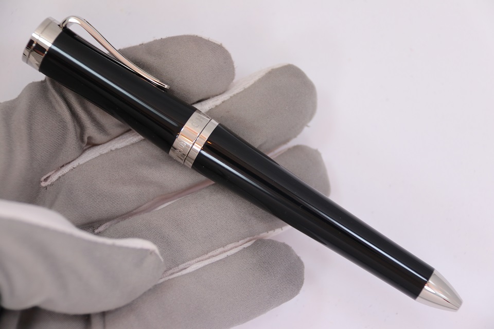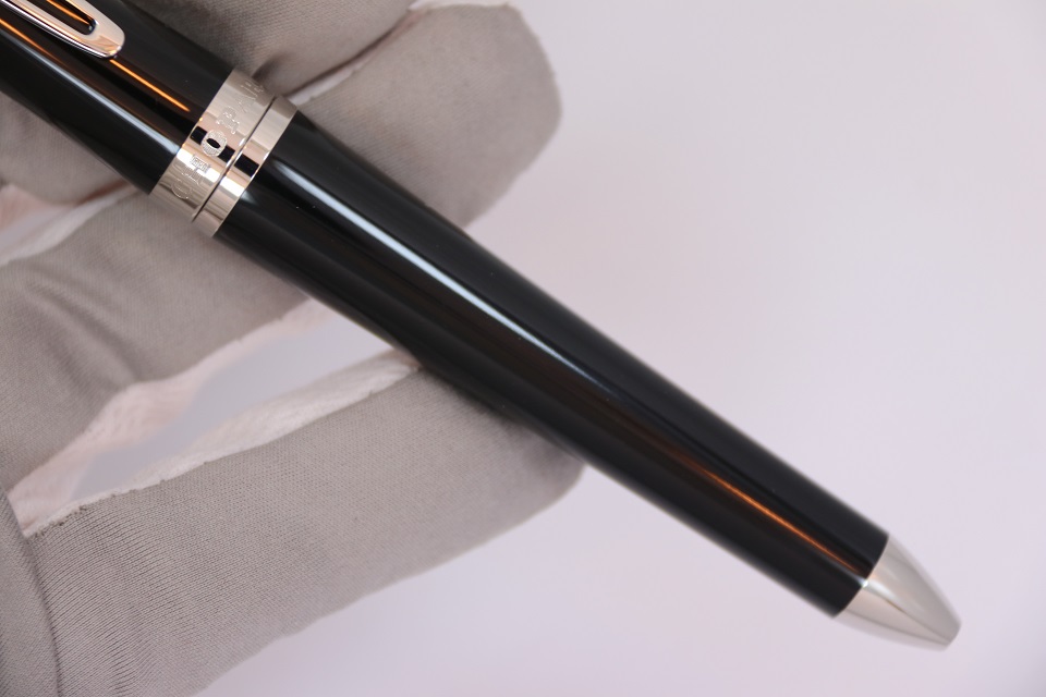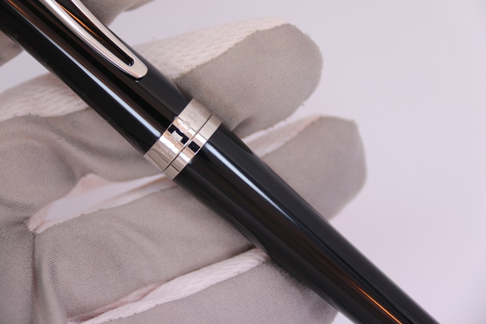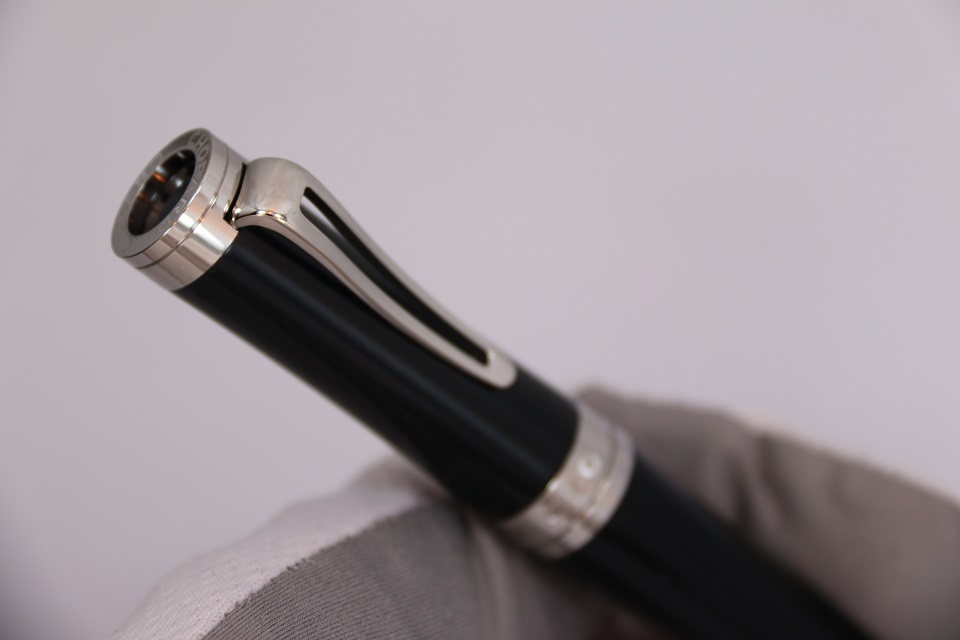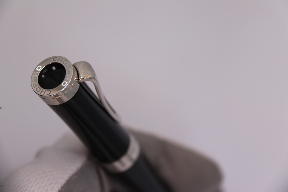 Шариковая ручка Chopard Racing привносит в искусство письма элегантность высшего порядка. Этот изящный пишущий инструмент украшен самым классическим образом: блестящий черный корпус сочетается в нем с палладиевой отделкой. Приятная на ощупь и ласкающая взор нежным глянцем ручка станет самой любимой среди всех пишущих принадлежностей.
