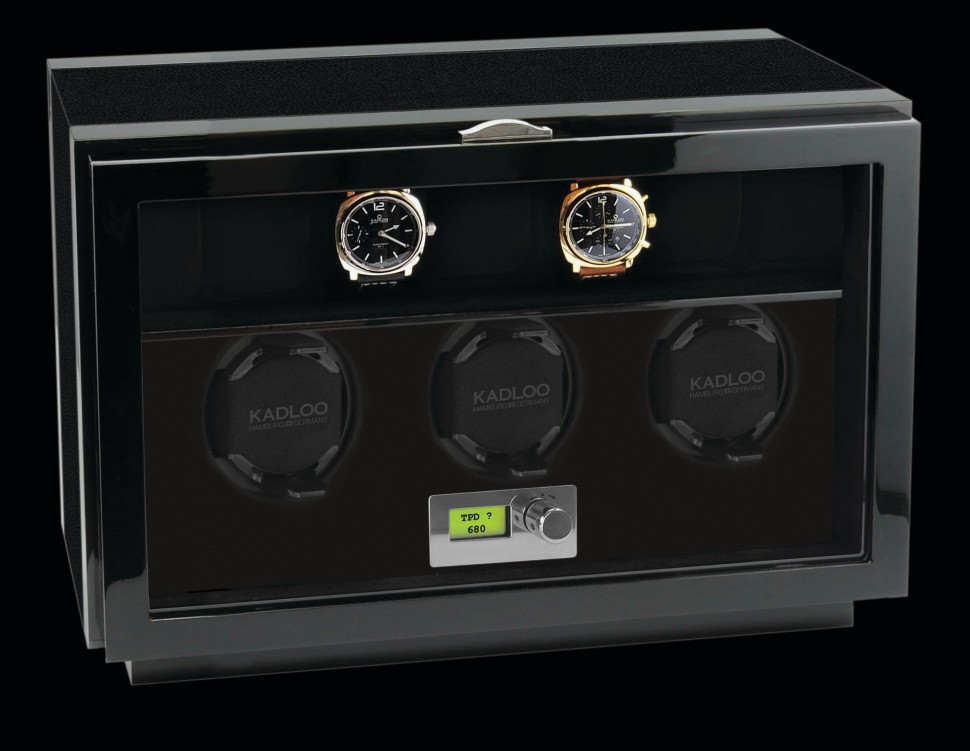 Шкатулка для подзавода 3-х и хранения 6-ти часов. Производства торговой марки KADLOO - Германия. Отличное сочетание дизайна, немецкого качества,исполнения и функциональных возможностей. Бесшумные моторы. Надежные, безопасные держатели для часов. ЖК-дисплей. Электронная регулировка управления. Светодиодная подсветка. Возможность программирования количество оборотов в сутки от 1 до 8640.