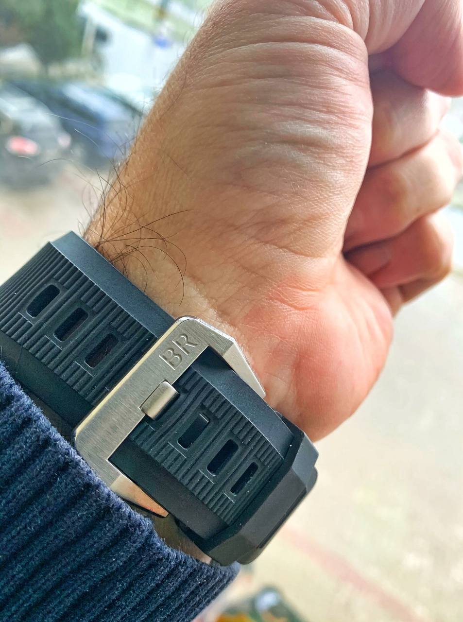 В тоже время, это классический Bell & Ross, квадратный стальной корпус; автоматический калибр с автоподзаводом BR-CAL.302 с запасом хода до 38 часов, защищенный антимагнитной оболочкой; сапфировое стекло; завинчивающаяся задняя крышка; корпус 42 мм.