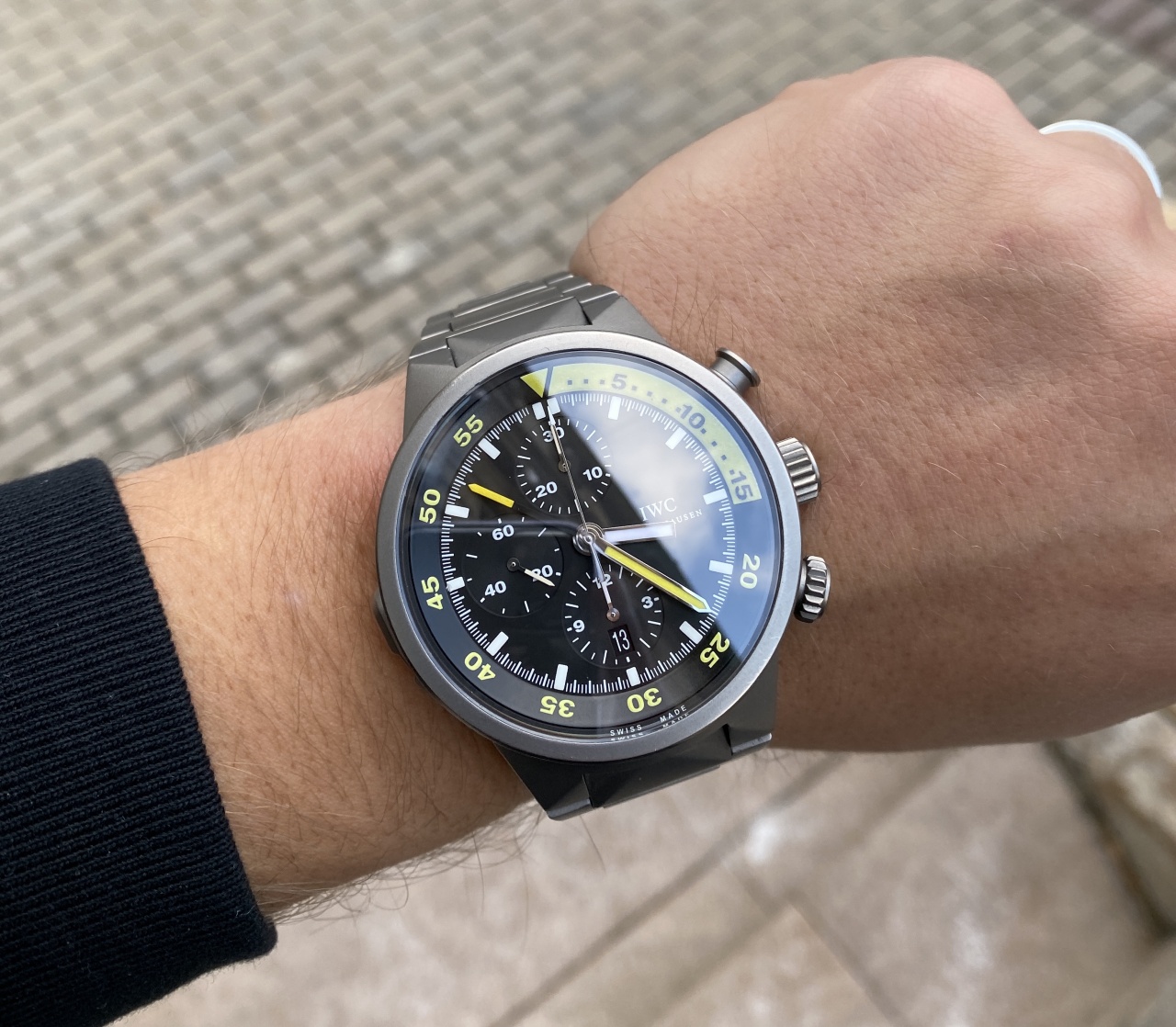 Шикарный и очень редкий Aquatimer! Со сплит-минутой! Состояние отличное , браслет длинный! Следы носки минимальные! Очень легкие и потрясающий браслет!