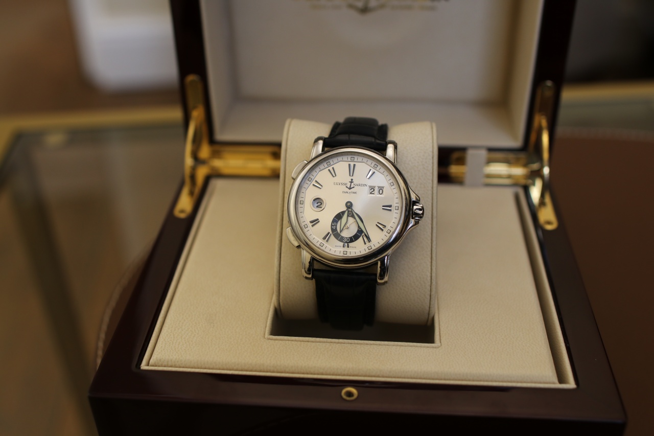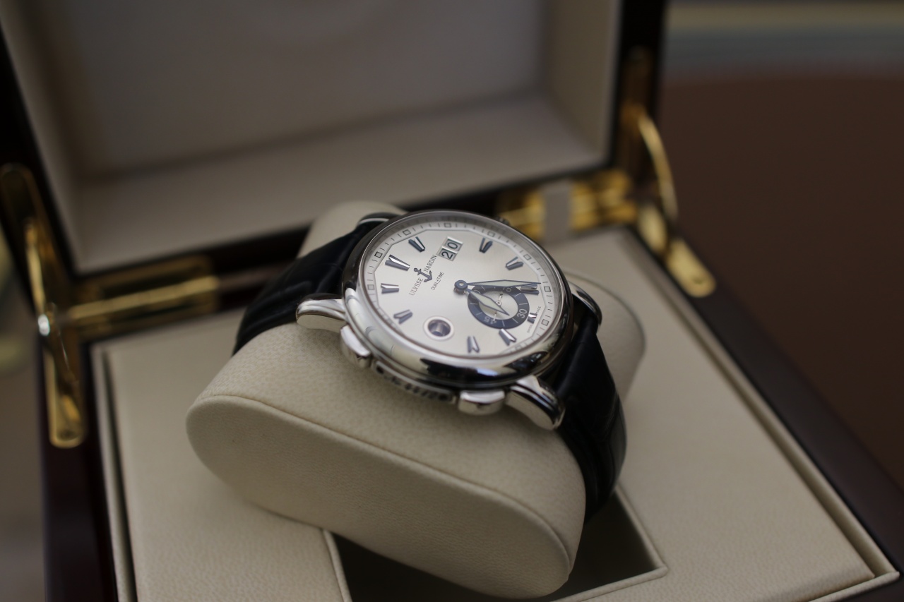 Классический Ulysse Nardin! Отличный костюмник , с прекрасным серебристым циферблатом с очень красивыми накладными метками! Ход отличный , оригинальный ремень на 5-