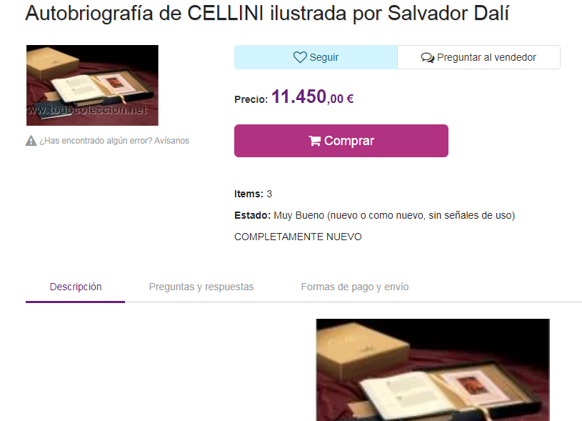 Листы, склеенные вручную на бумаге с золотой краской, а также логотип Фонда Гала-Сальвадора Дали, создавая для себя ценную коллекцию искусства. Количество экземпляров этого роскошного издания, уже распроданного, составило всего 998 единиц, после чего листы были уничтожены у нотариуса, поэтому он никогда не будет повторно отредактирован в этом формате.