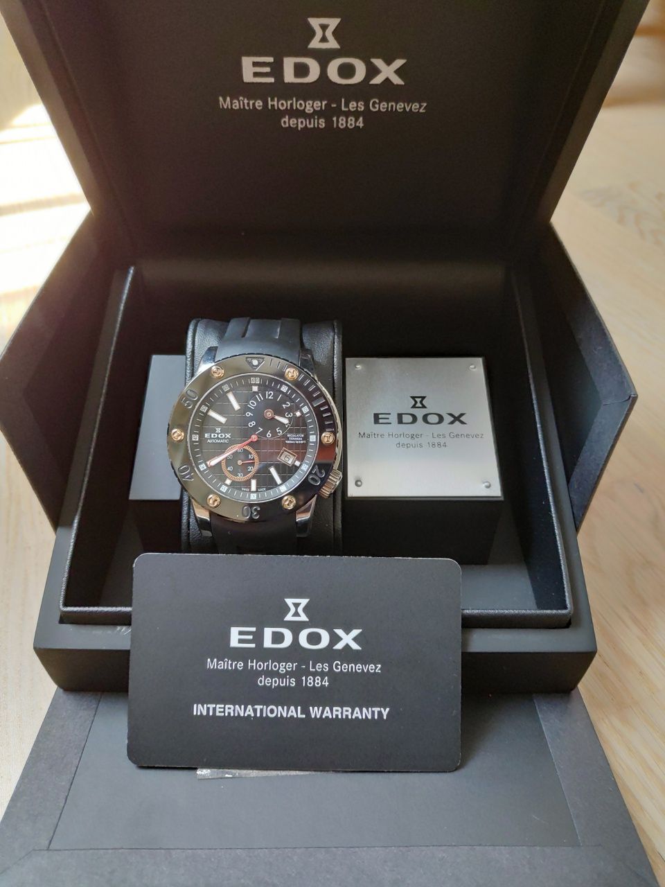 Интересно, что эта модель отлично подойдет для дайвинга, поскольку не отвлекает внимание от центральной минутной стрелки и вращающегося в одну сторону ранта. Модель оснащена автоматическим калибром Edox 77 (на базе ЕТА 2892 с модулем регулятора Dubois Depraz 14070)".