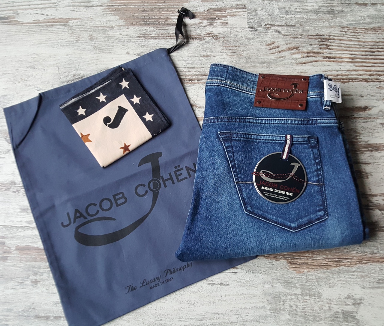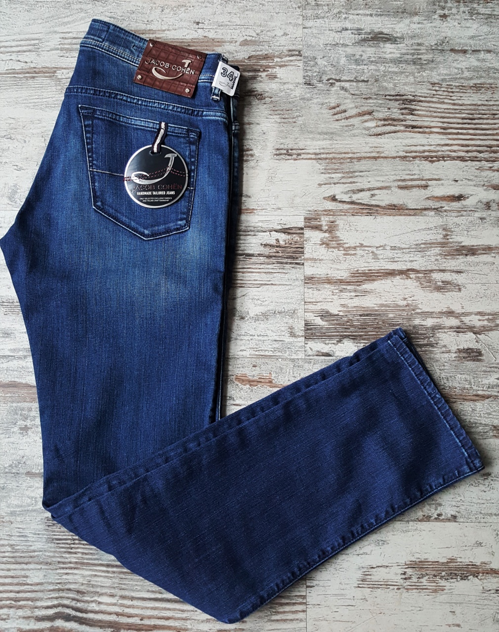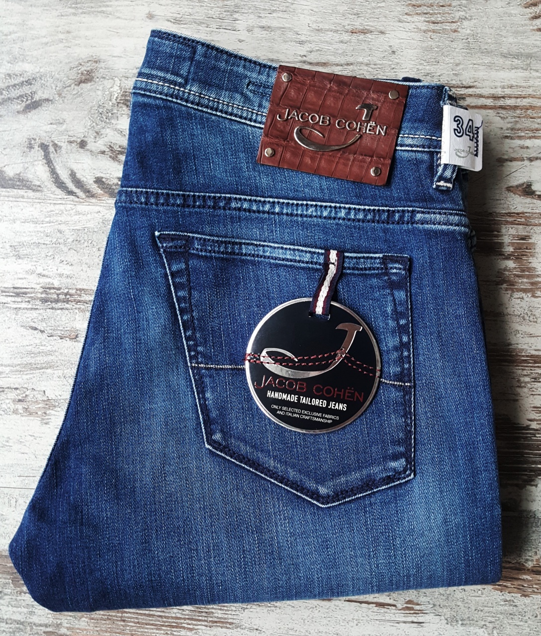 ДЖИНСЫ JACOB COHEN ИЗ ЛЮКСОВОЙ ЛИНИИ. ПАТЧ ИЗ КОЖИ КРОКОДИЛА. Р-34