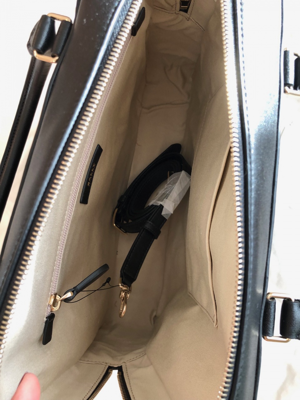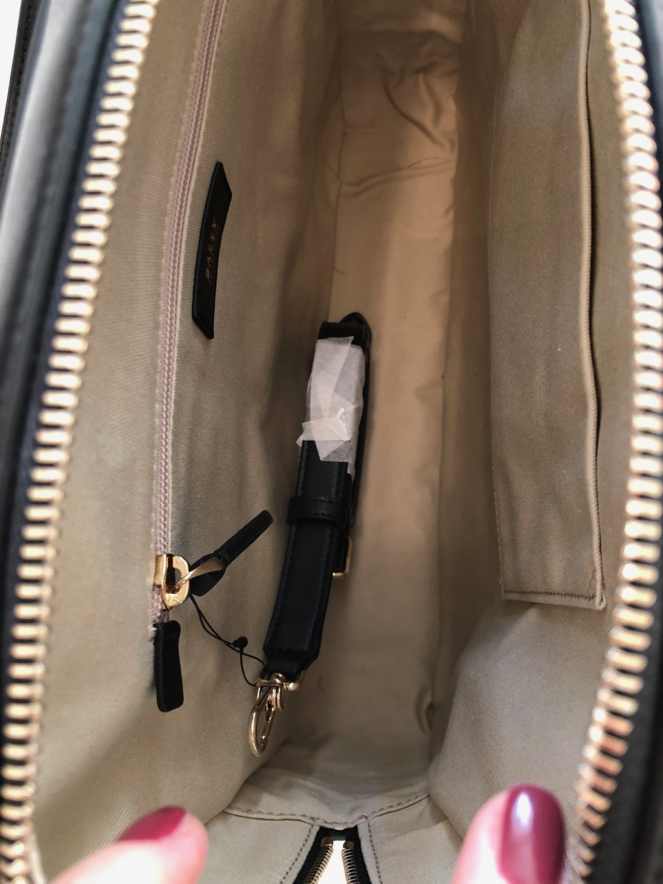 Два внутренних кармана, отделение на молнии. Золотистая фурнитура, лого бренда на передней панели, кожаный зиппер (в пленках). Очень легкая, комфортная, вместительная - стильно смотрится, отлично носится, всегда на пике моды. Не боится влаги, легко ухаживать.
