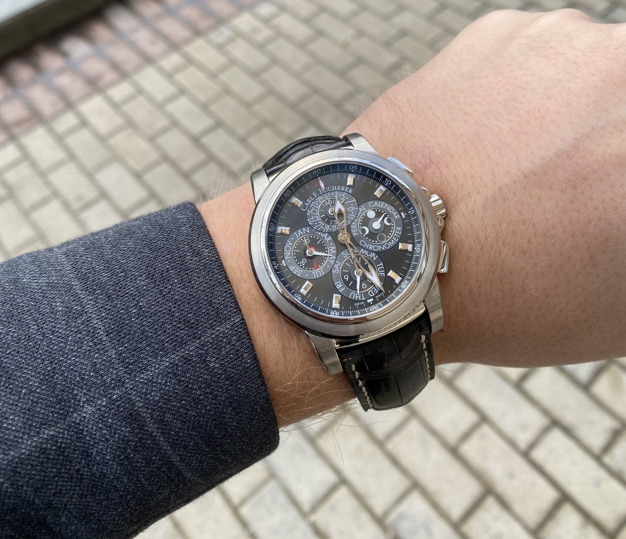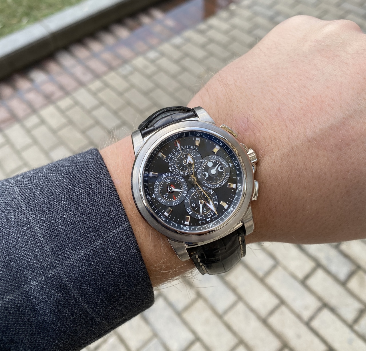 Шикарный крупный вечник с хронографом от Carl F. Bucherer! Лимитка в 50 штук! -33.500 $ от ретейла! Ход отличный , оригинальный ремень на 5- ! Стекло без сколов и царапин! Приятный вес в 188 грамм!