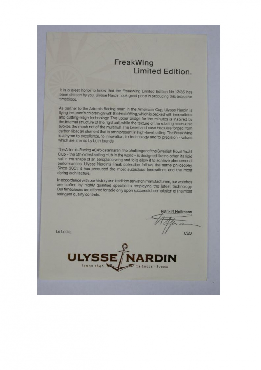 Ulysse Nardin Freak Wing Limited Edition реф. 2103-138, серийный номер 12/35