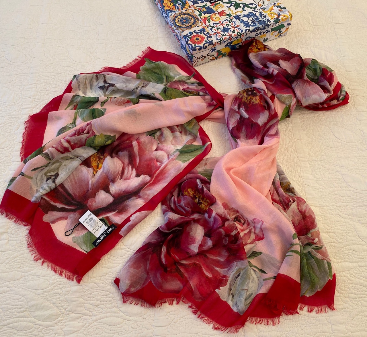 Палантин DOLCE & GABBANA женский. Новый, со всей упаковкой. Кашемир, модал. Размер 200х135см. Коллекция 2019 - принт Пионы. [УЦЕНКА, -55%]