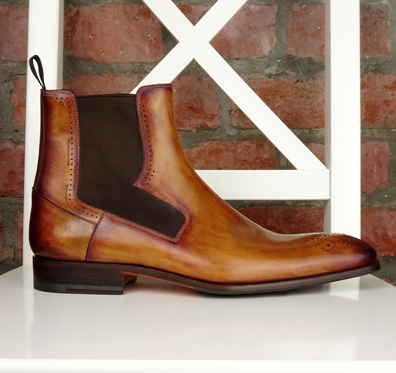 Шикарные мужские коричневые челси ручного изготовления, декора и окраса, из прочной натуральной кожи. Классика шикарной обуви от Santoni. Премиум-линейка.